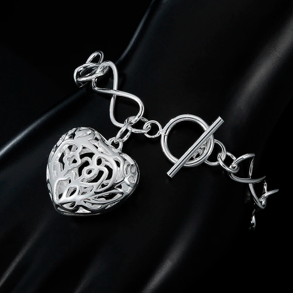 This elegant 925 sterling silver bracelet features a pretty hollow heart design, perfect for parties, weddings, or Christmas celebrations. A stunning accessory that adds a touch of glamour to any outfit.