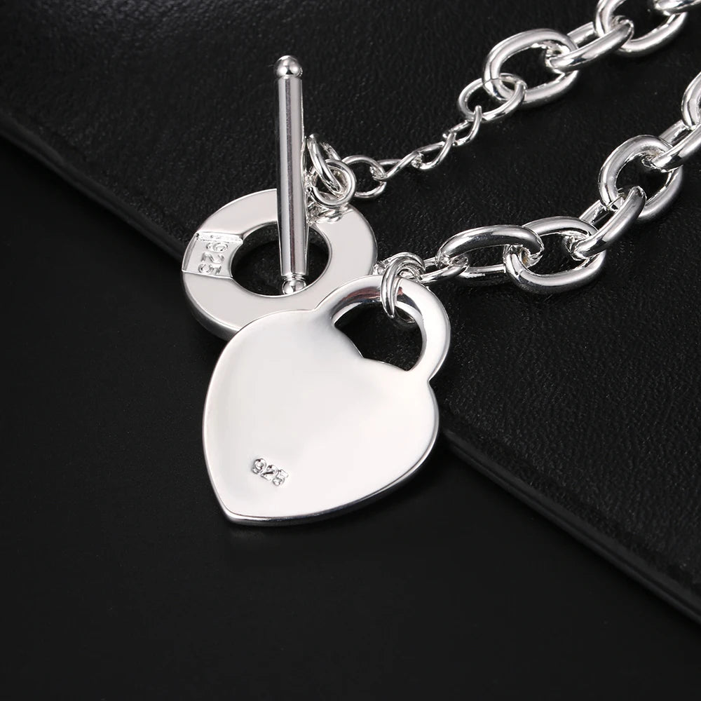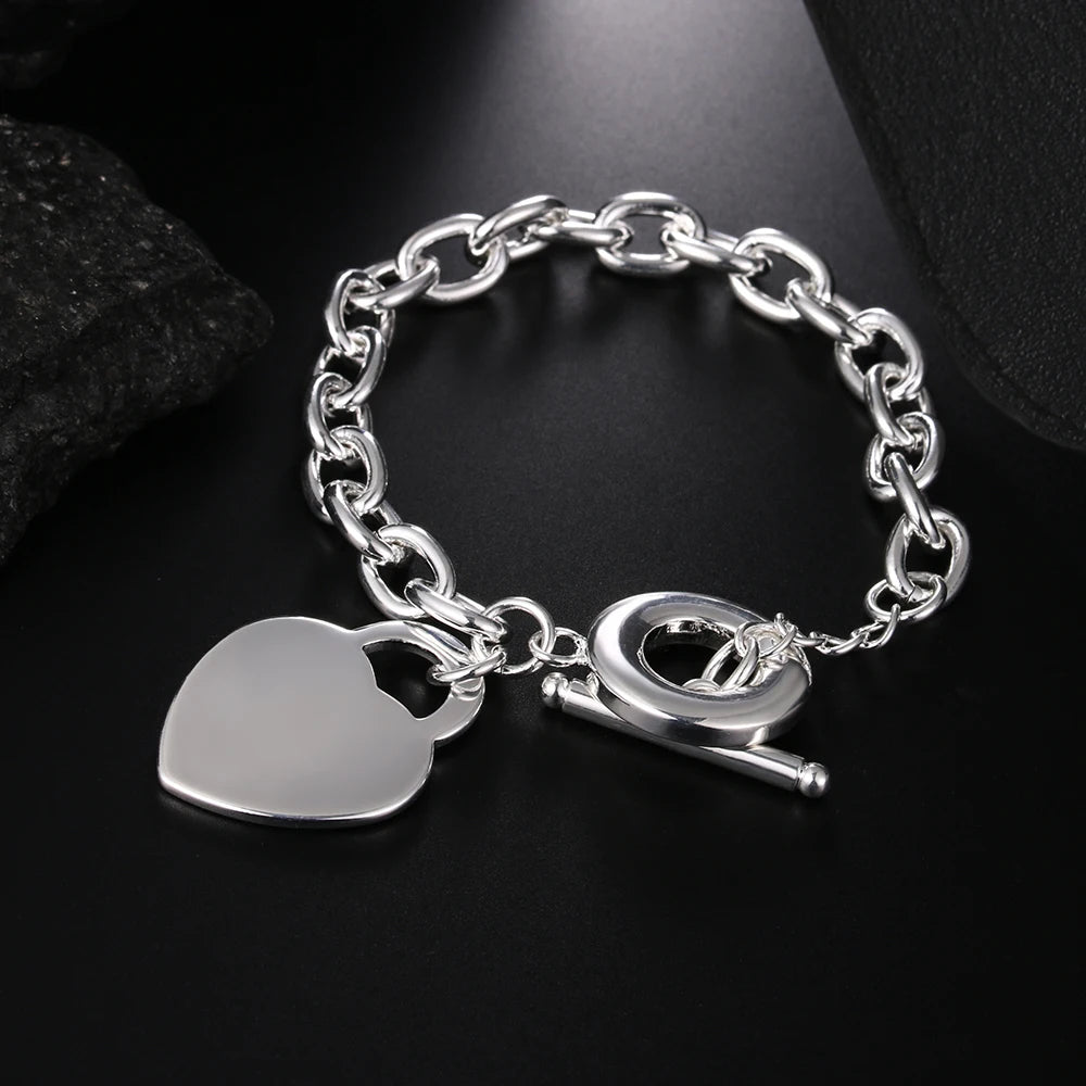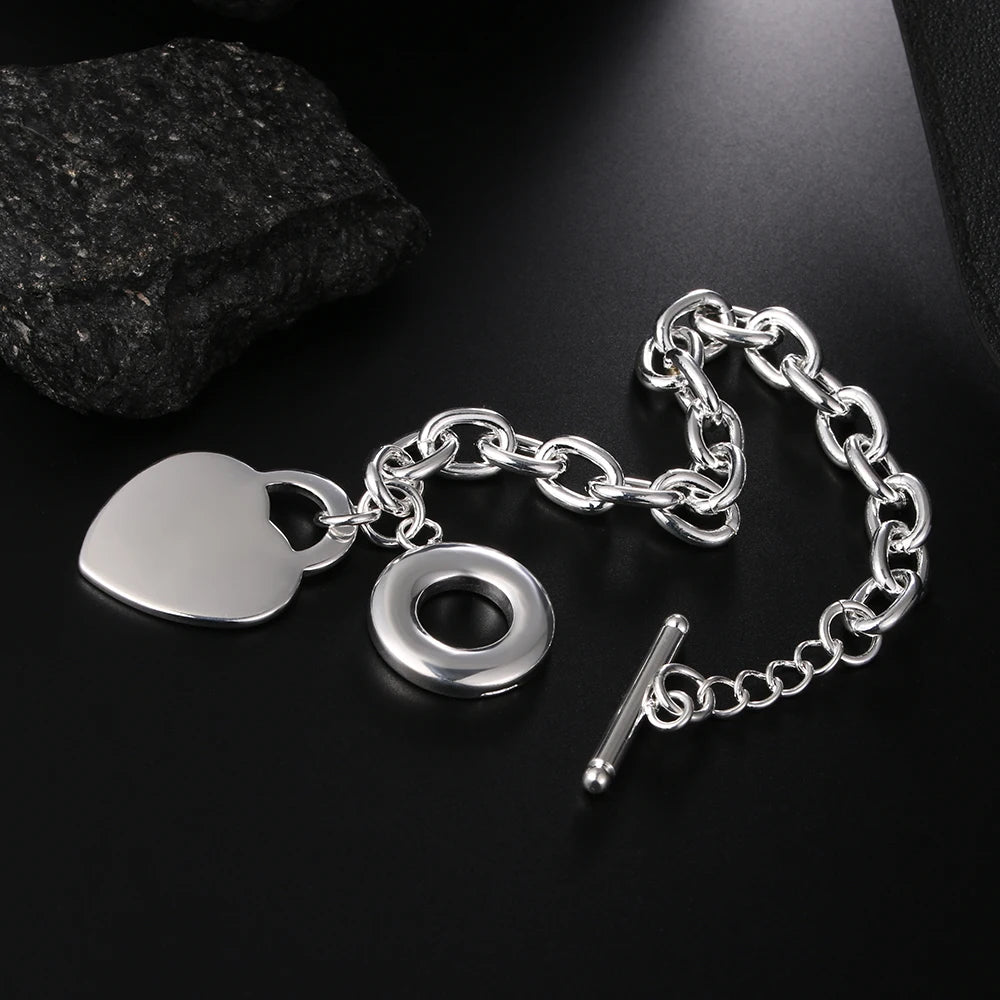 Elegant 925 sterling silver bracelet with hanging heart charm, perfect for wedding parties or everyday wear.