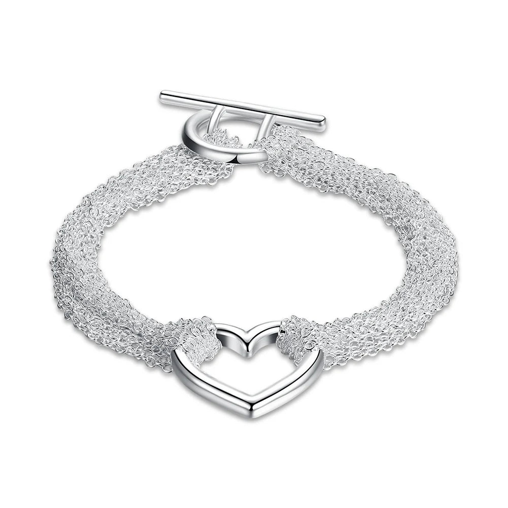 925 Sterling Silver Heart Tassel Bracelet Women Jewelry Top Gift