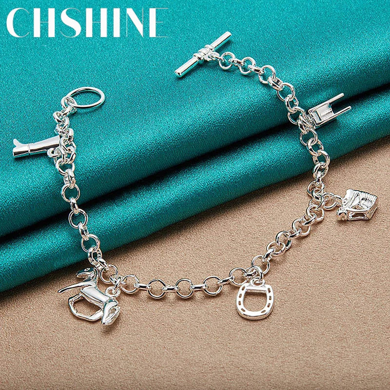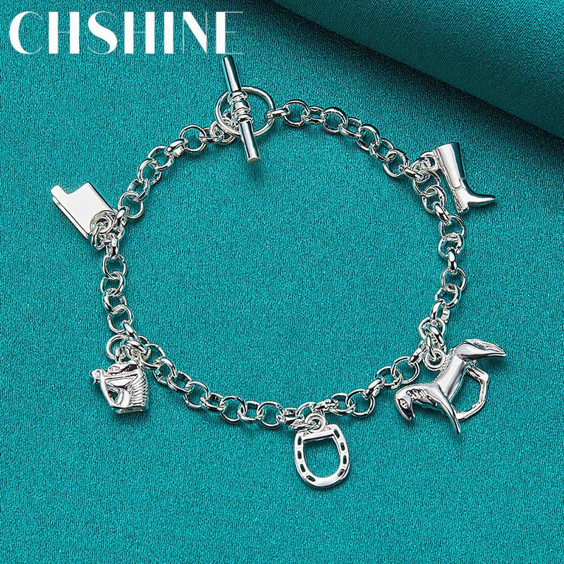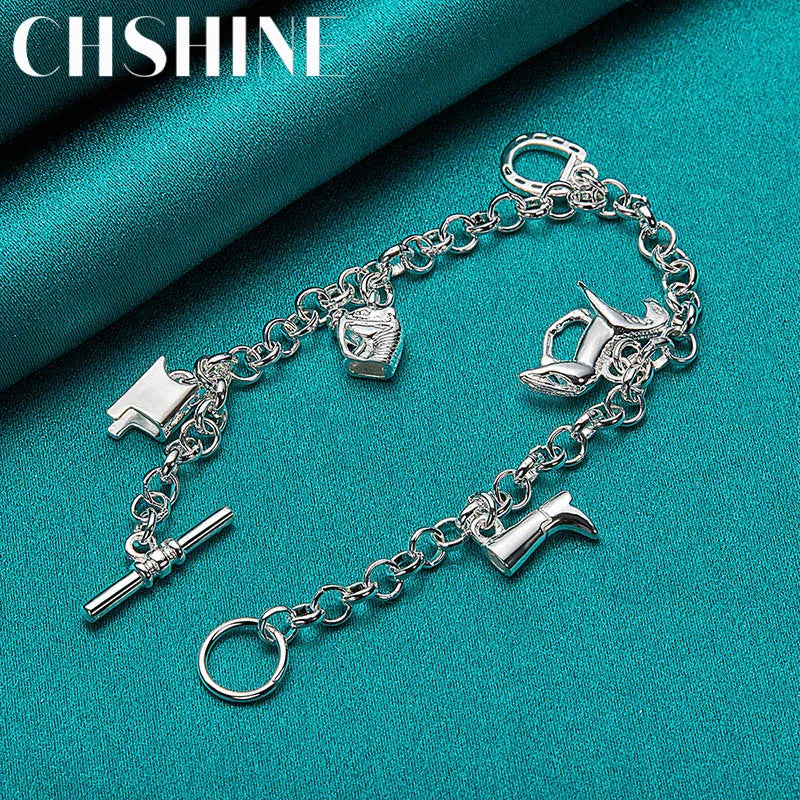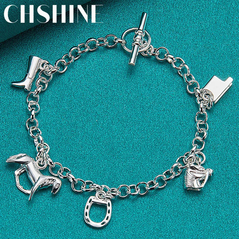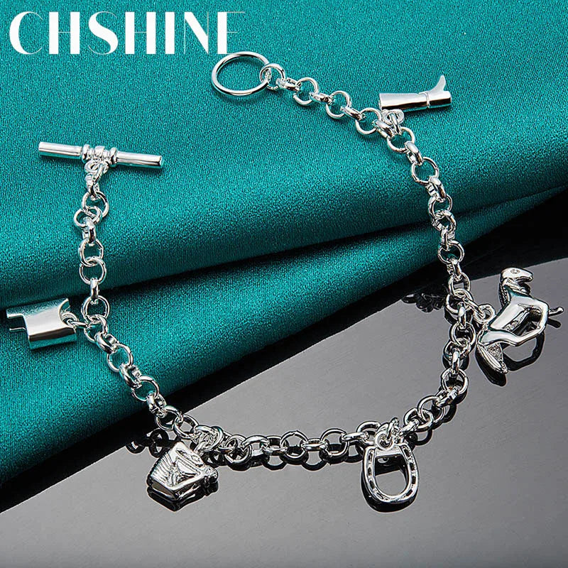 This elegant bracelet features a 925 sterling silver horse shoe boots pendant, perfect for weddings, engagements, and parties.