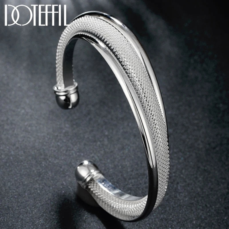 This stunning bangle bracelet is made of 925 sterling silver. It features a unique reticulated design, perfect for weddings and engagements.