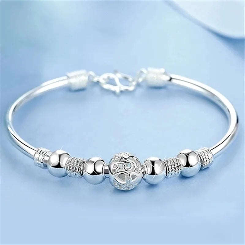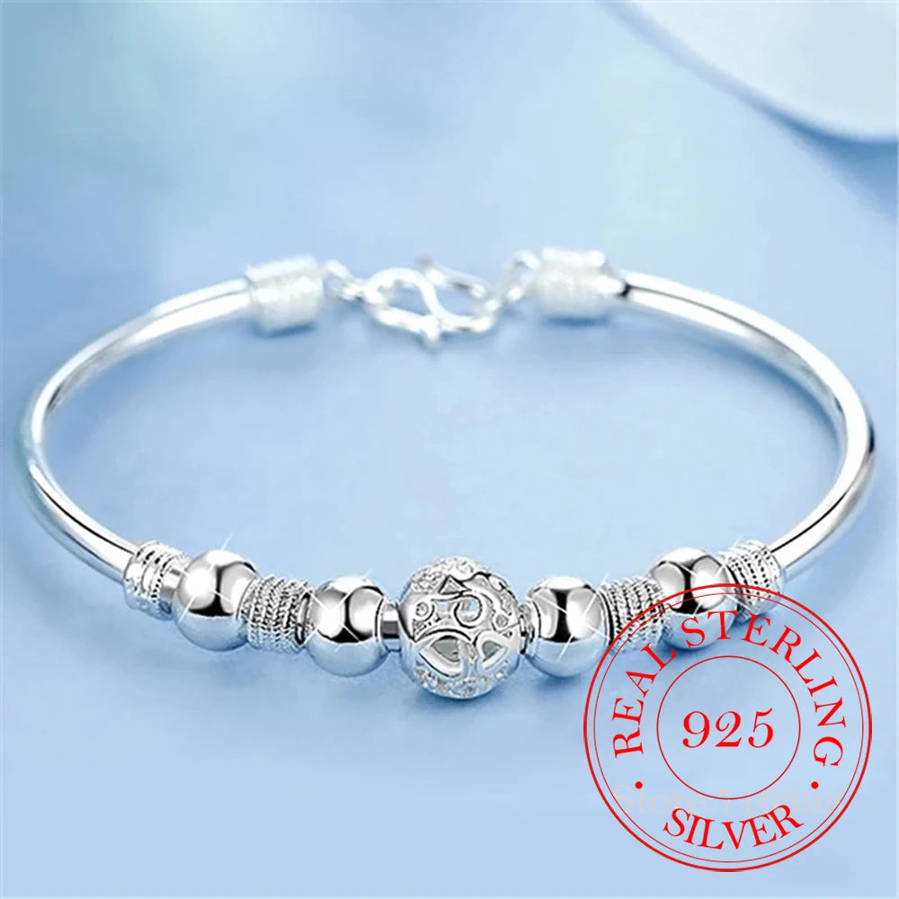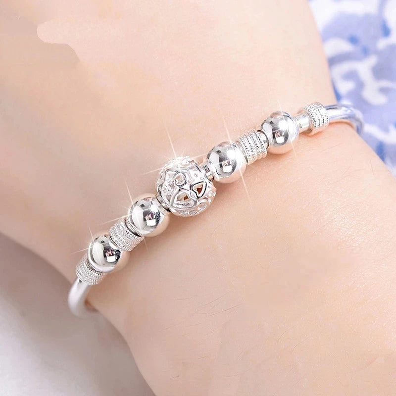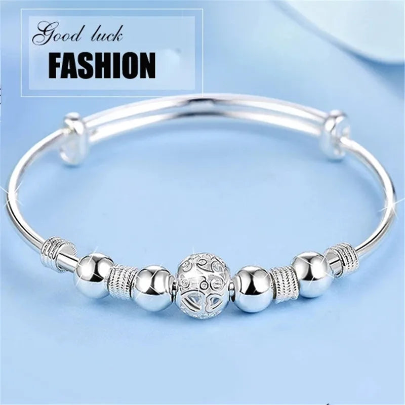 Elegant 925 sterling silver bracelet with lucky beads charm designed for women. Adjustable chain for perfect fit. Ideal for wedding and parties.