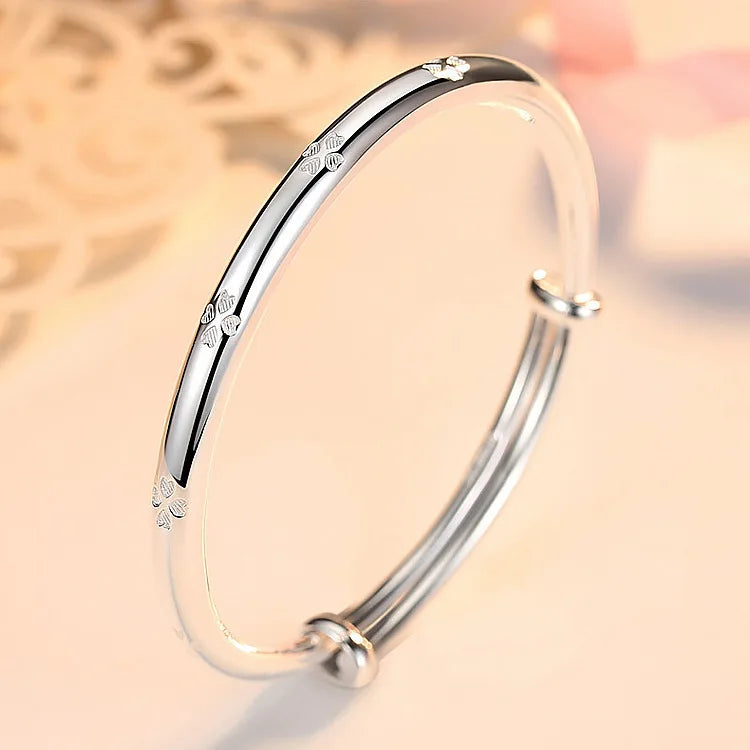 This beautiful 925 sterling silver bracelet features a lucky clover design, making it a perfect accessory for parties and weddings. The bracelet is adjustable to fit different wrist sizes.