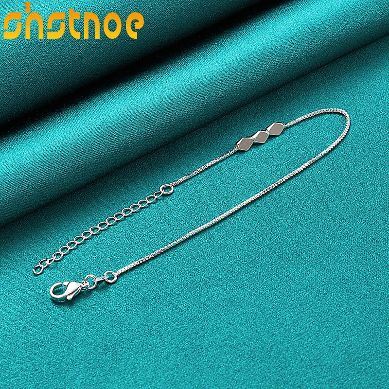 Elegant and stylish 925 sterling silver bracelet with three rhombus beads, perfect for parties, engagements, weddings, and as a charming gift for women.