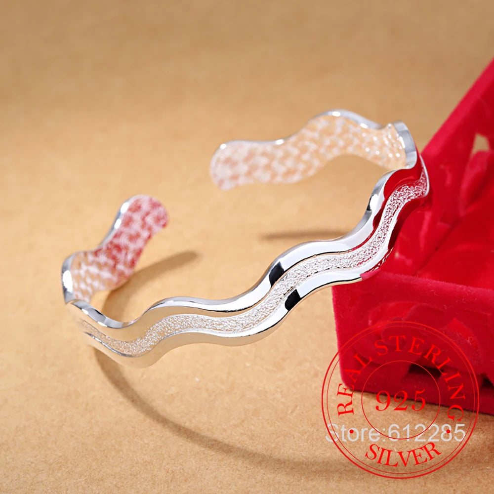 Beautifully crafted 925 sterling silver bracelet with a ripple whirl design. This open cuff bangle is adjustable to fit most wrist sizes. A perfect gift for women, men, girls, and a great choice for weddings or special occasions.