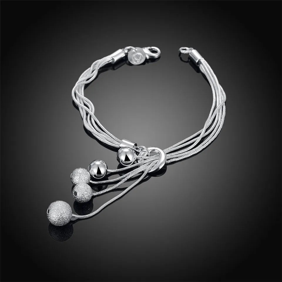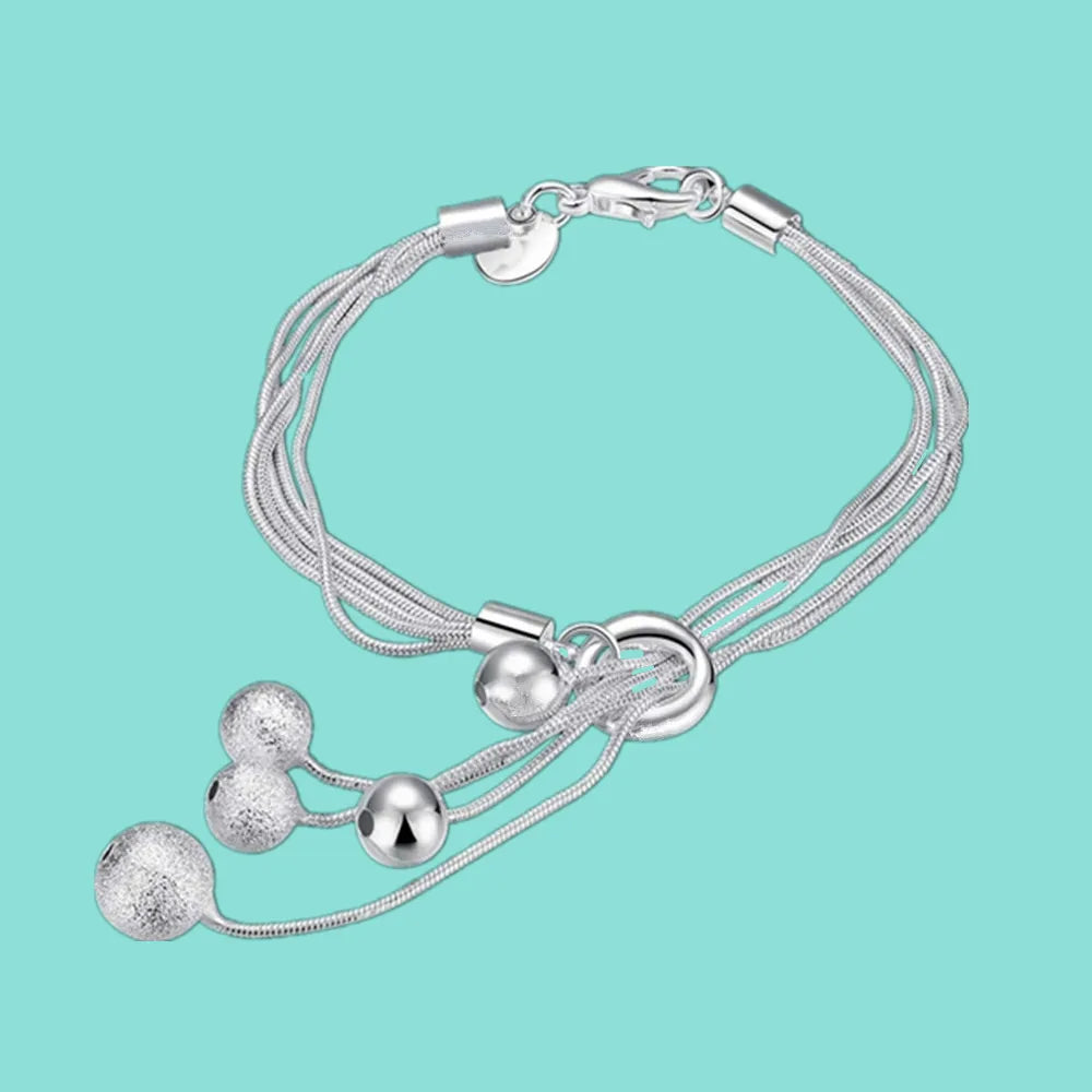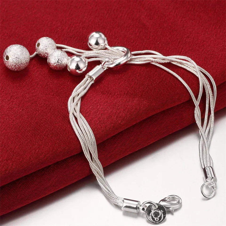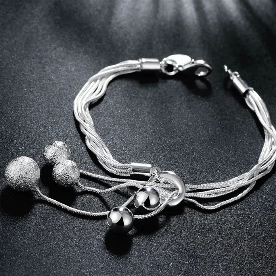 Elegant and stylish 925 sterling silver bracelet featuring snake chains and beads. Perfect accessory for any outfit.