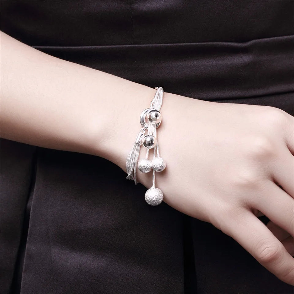 925 Sterling Silver Snake Chain Bead Bracelet Jewelry for Women