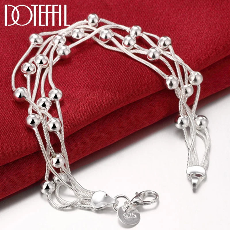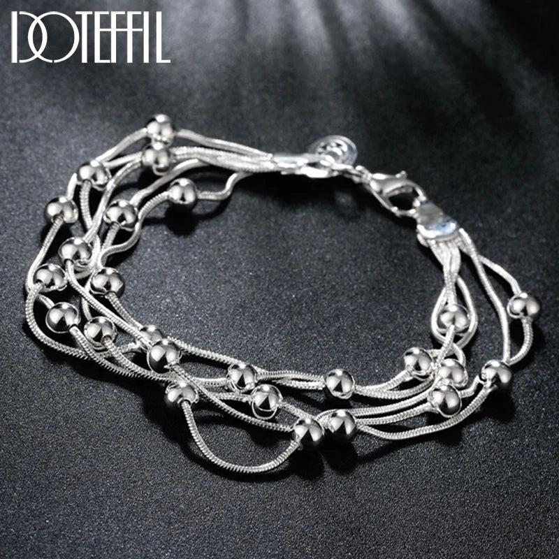 925 Sterling Silver Snake Chain Beads Bracelet for Women
