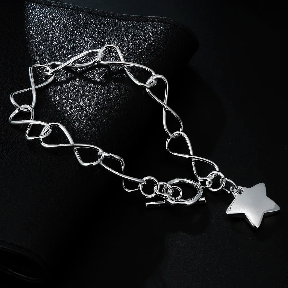 925 Sterling Silver Star Charm Pendant Bracelet for Women