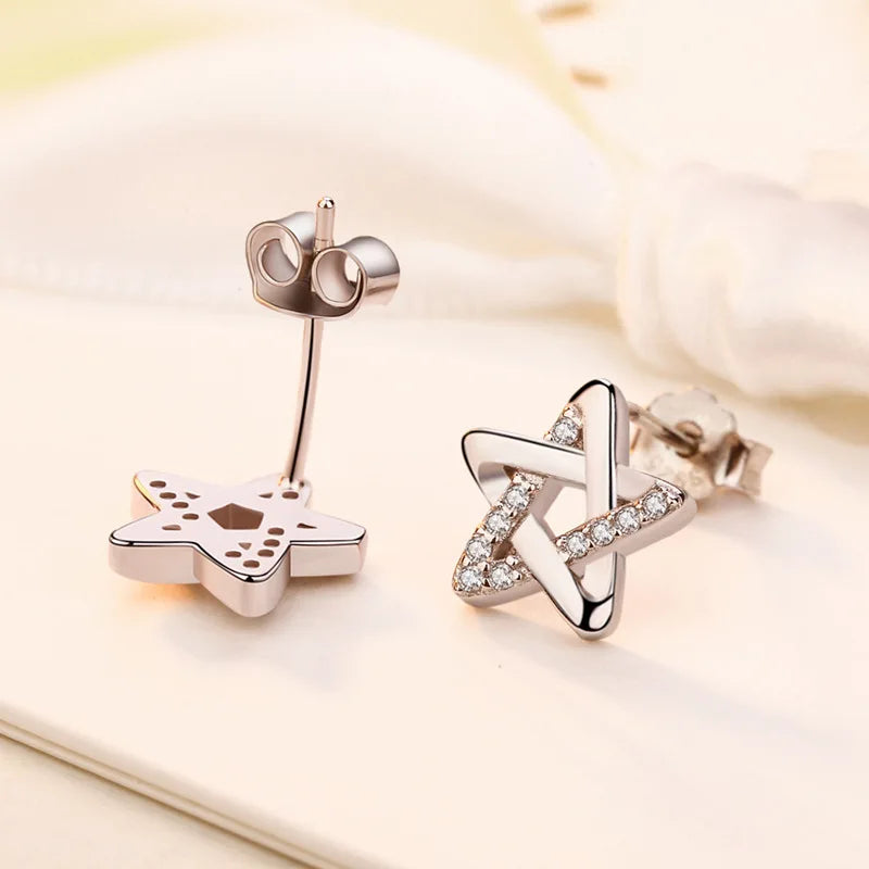 Add a touch of romance to your look with these elegant star stud earrings made of real 925 sterling silver. Perfect for any occasion or as a special gift.