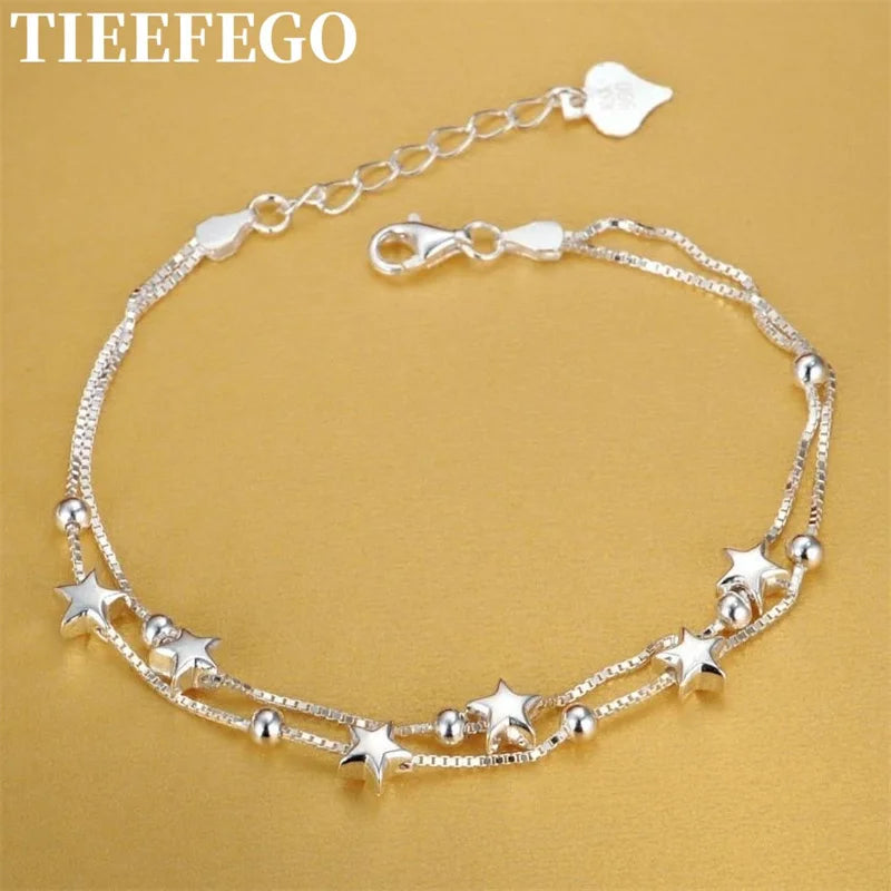 Add a touch of elegance to your look with this stunning silver stars bracelet. Perfect for parties, weddings, and holidays.