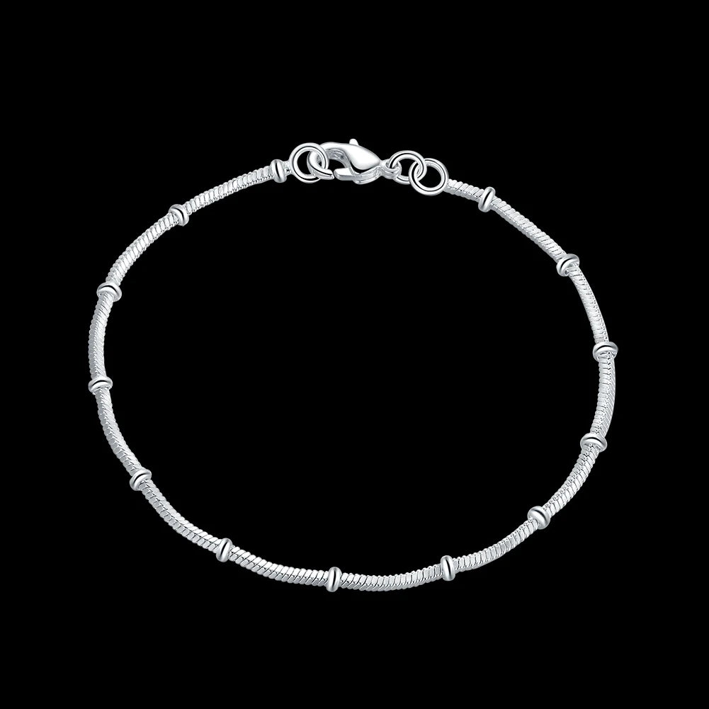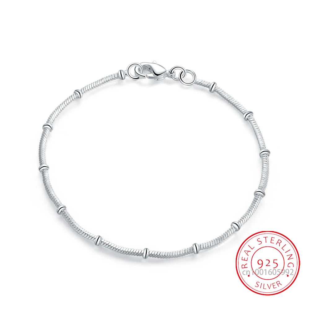 925 Sterling Silver Thin Beads Snake Chain Bracelet for Women Girls