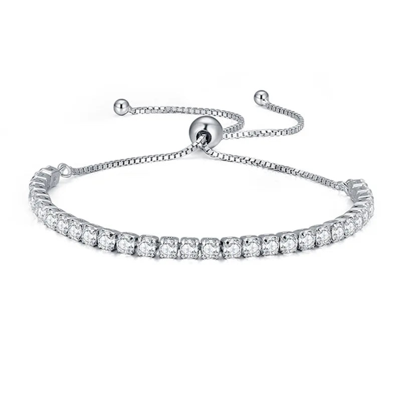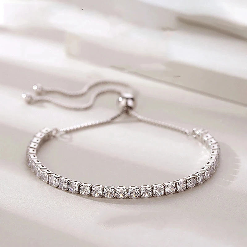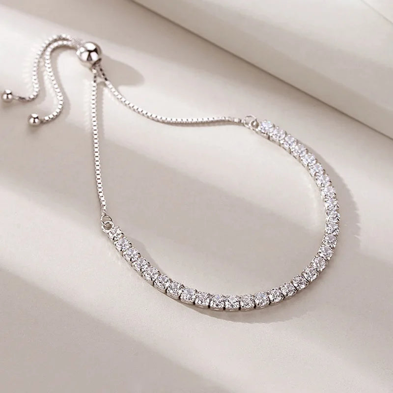 Elegant 925 sterling silver bracelet adorned with sparkling zircon stones, perfect for parties and special occasions.