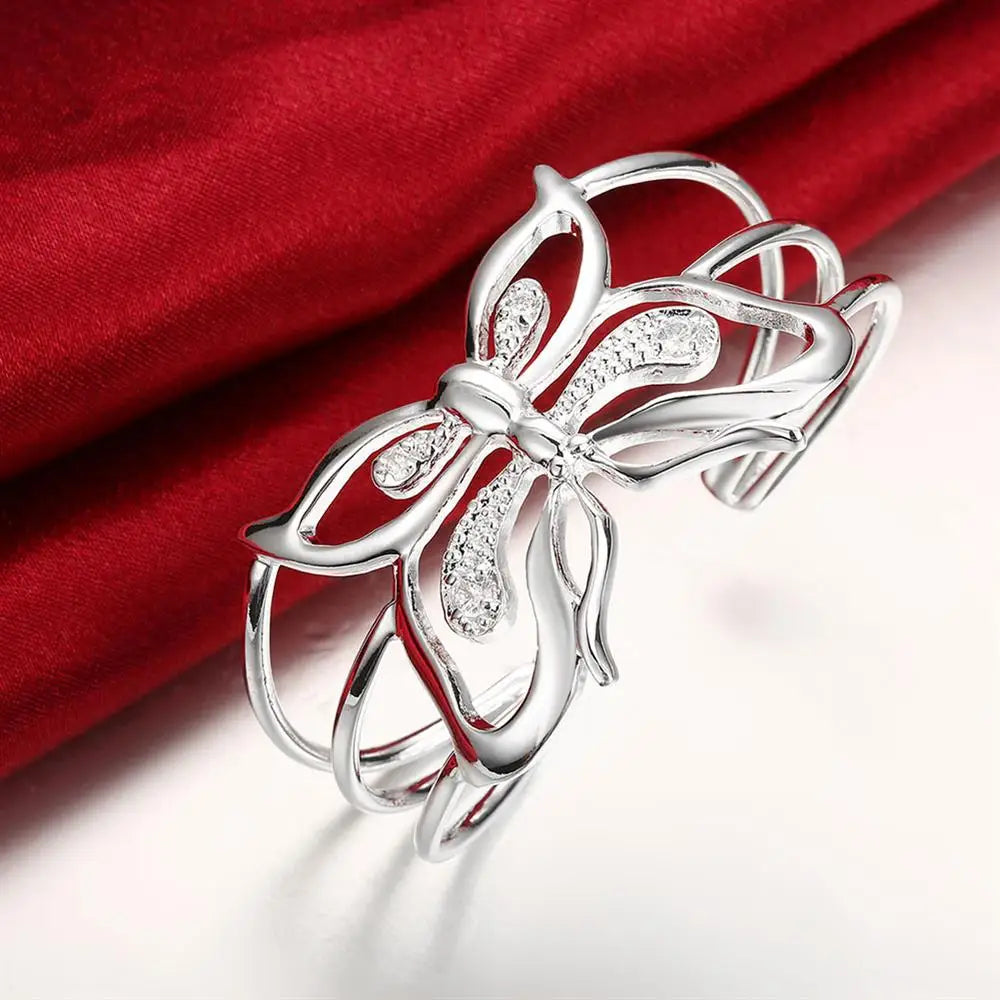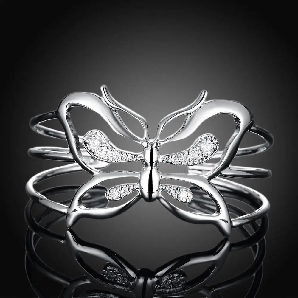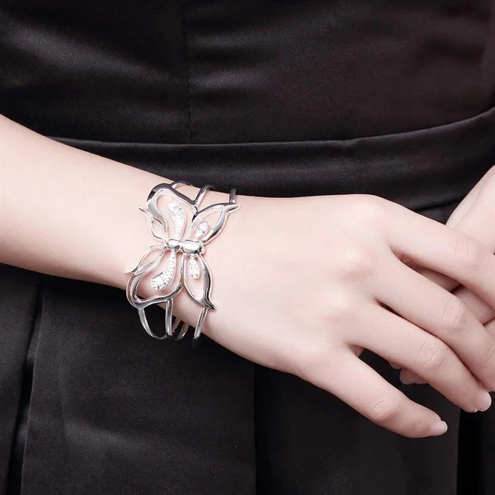 Butterfly Crystal Wide 925 Sterling Silver Bangles for Women