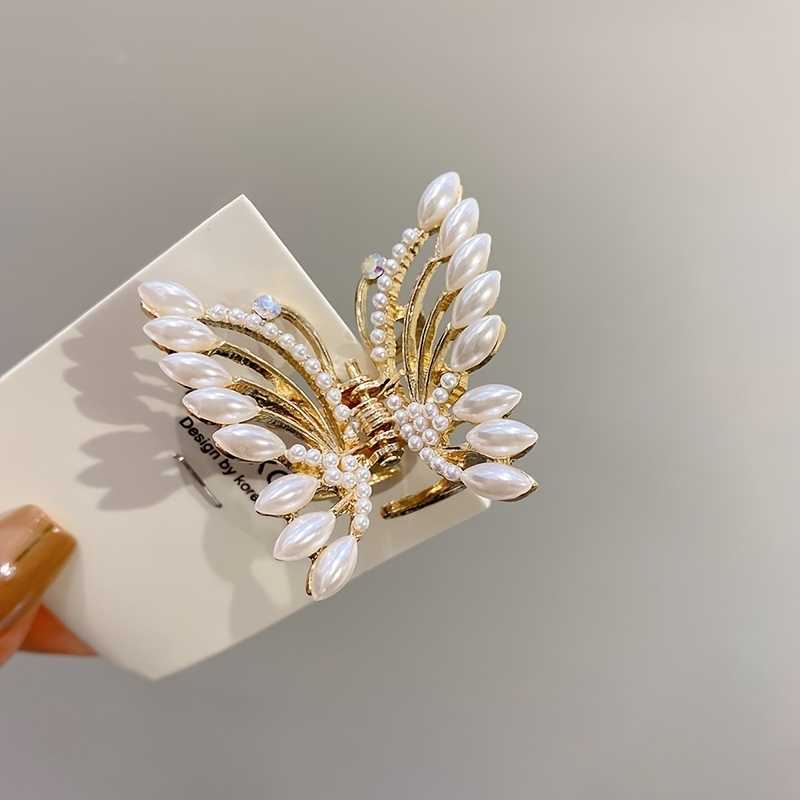 Butterfly Mini Hair Claw Clips With Pearl Accents Adding A Fashionable Touch