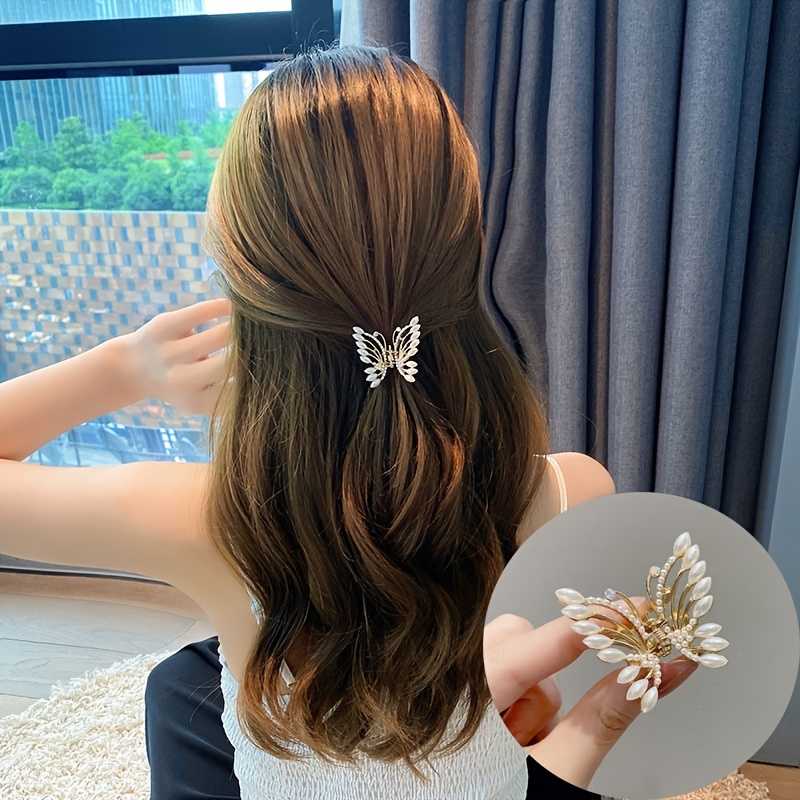 Butterfly Mini Hair Claw Clips With Pearl Accents Adding  A Fashionable Touch