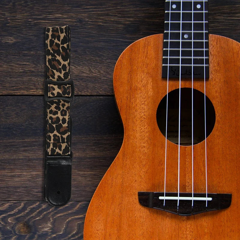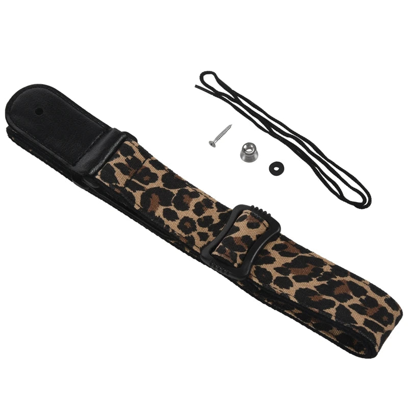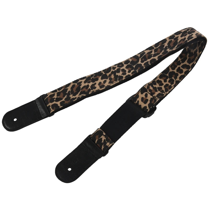 Cartoon Style Guitar Strap Denim Belt Leather Ends Yellow Leopard Print