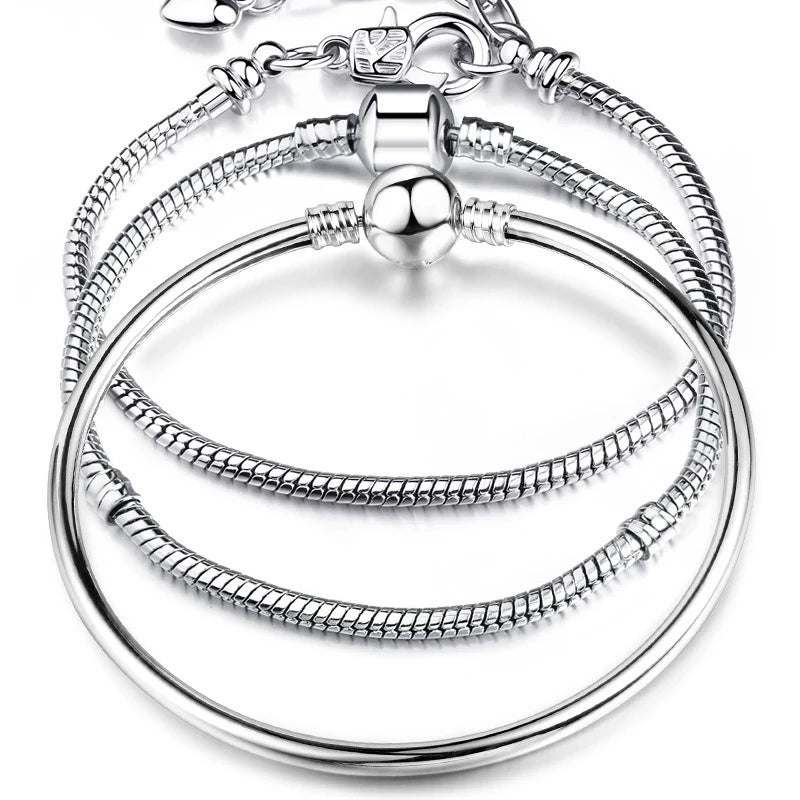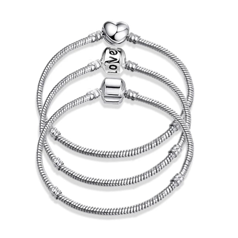 Charm Bracelet Rose Silver Alloy Snake Chain for Women Bead DIY Jewelry