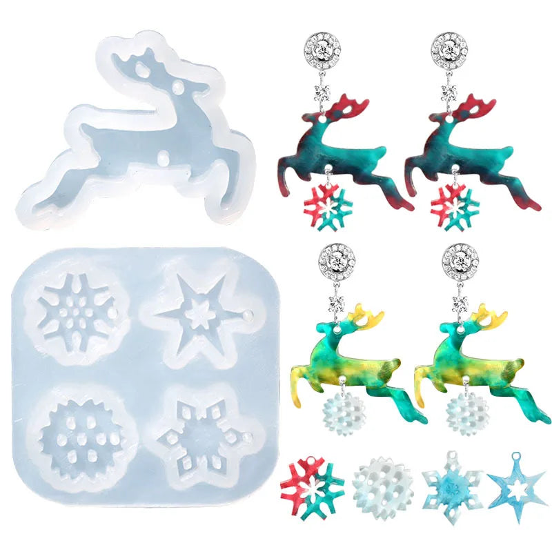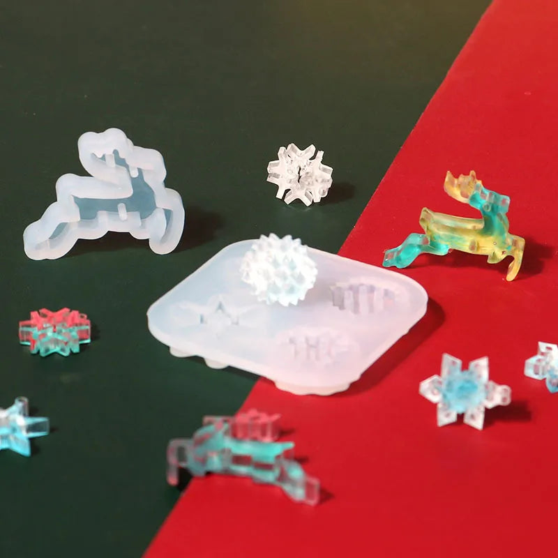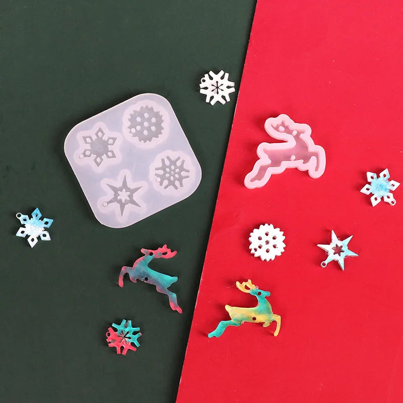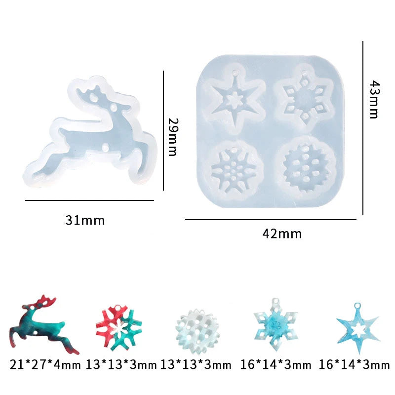 Create beautiful mini ornaments for your holiday decorations or jewelry making projects with this silicone mold. Perfect for resin crafts, it features a deer, snowflake, and star designs.