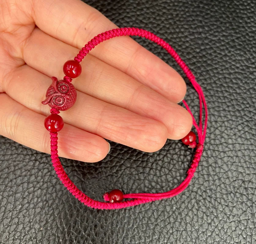Cinnabar Chinese Owl DIY Bracelet Red Bangles Knotted Jewelry