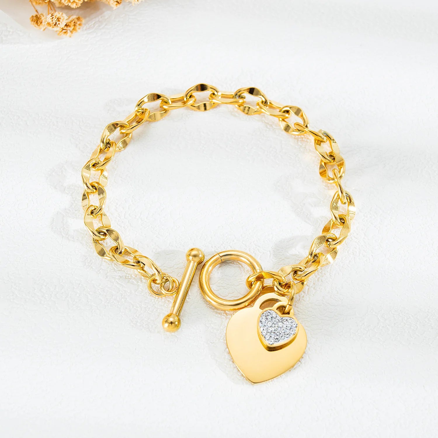 Elegant stainless steel bracelet with crystal accents for a timeless look.