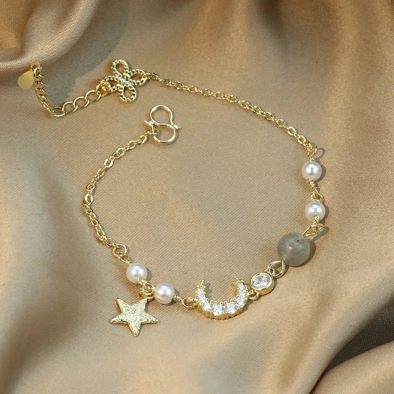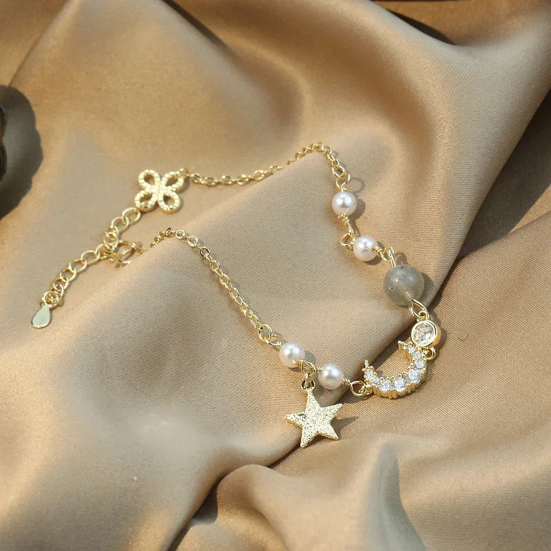 - 925 Sterling Silver Bracelet with Crystal Star Moon Charm