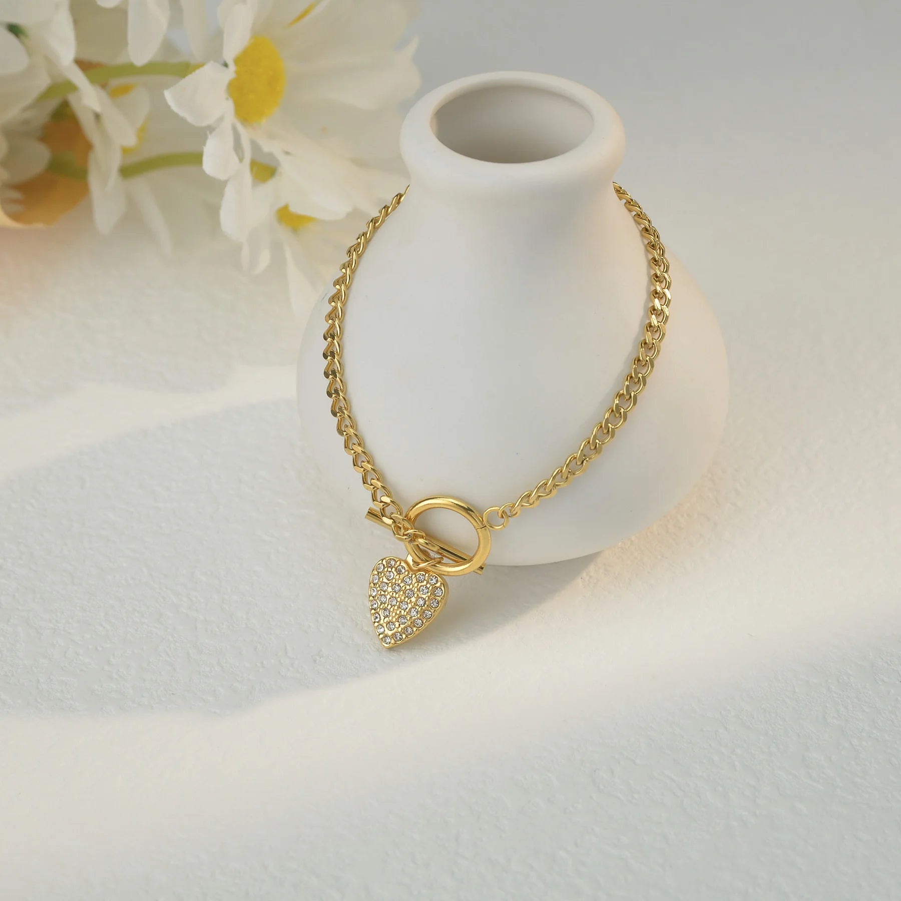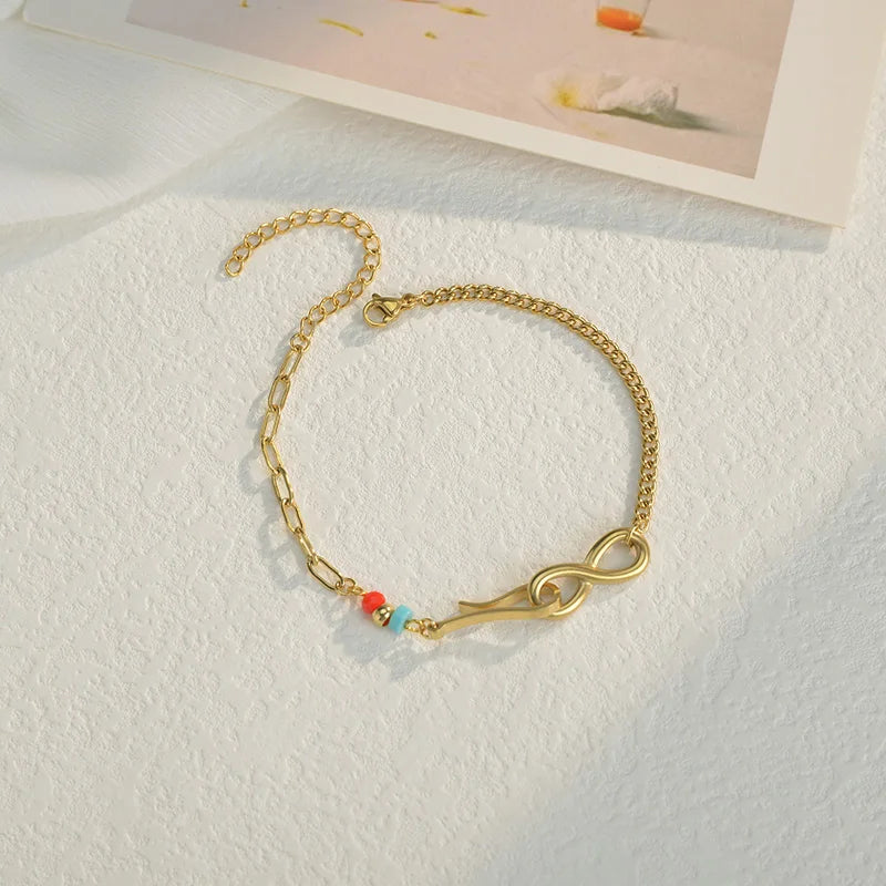 Elegant and stylish Cuban chain bracelet with heart infinity design. Perfect accessory for women's fashion.
