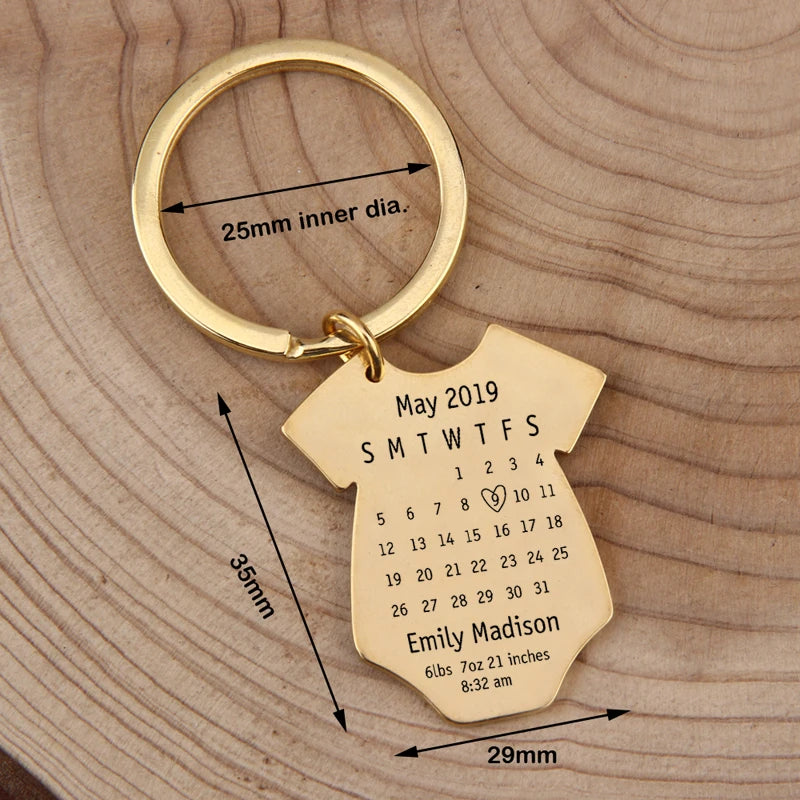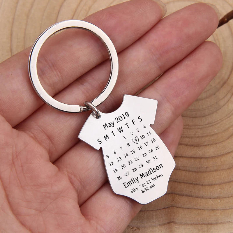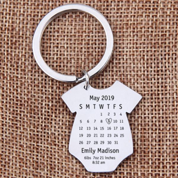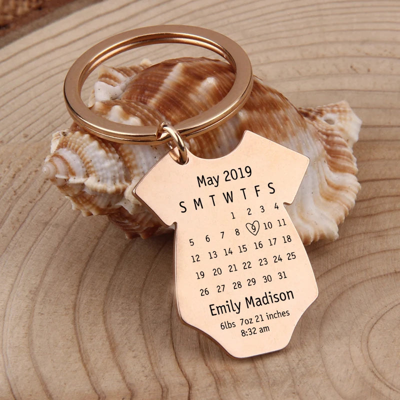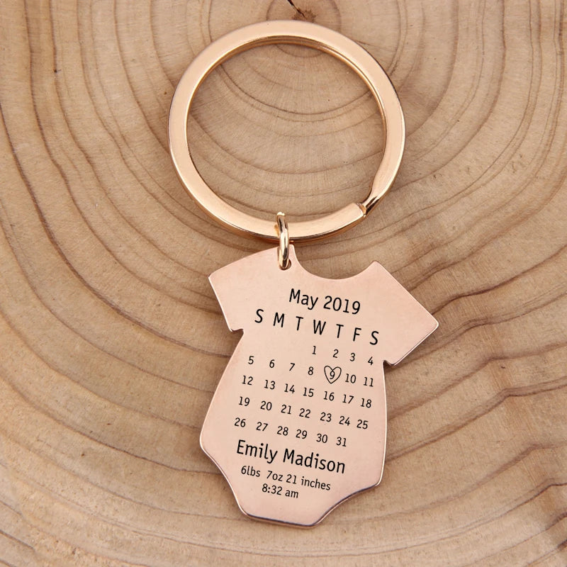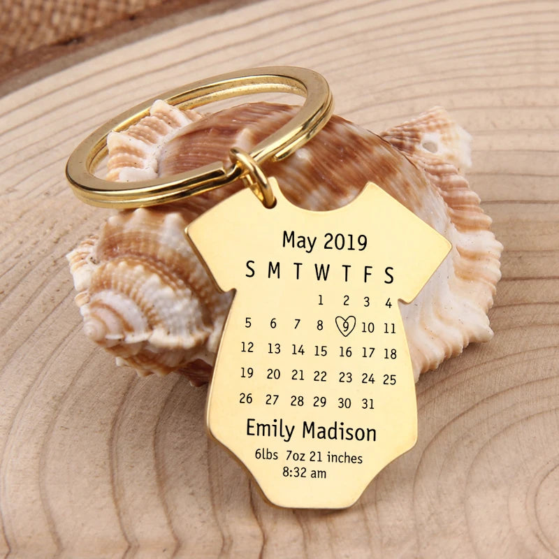 Celebrate the arrival of your little one with this personalized key chain. A perfect gift for first-time parents.