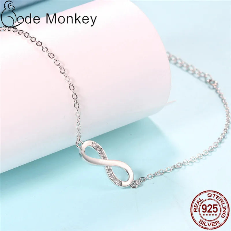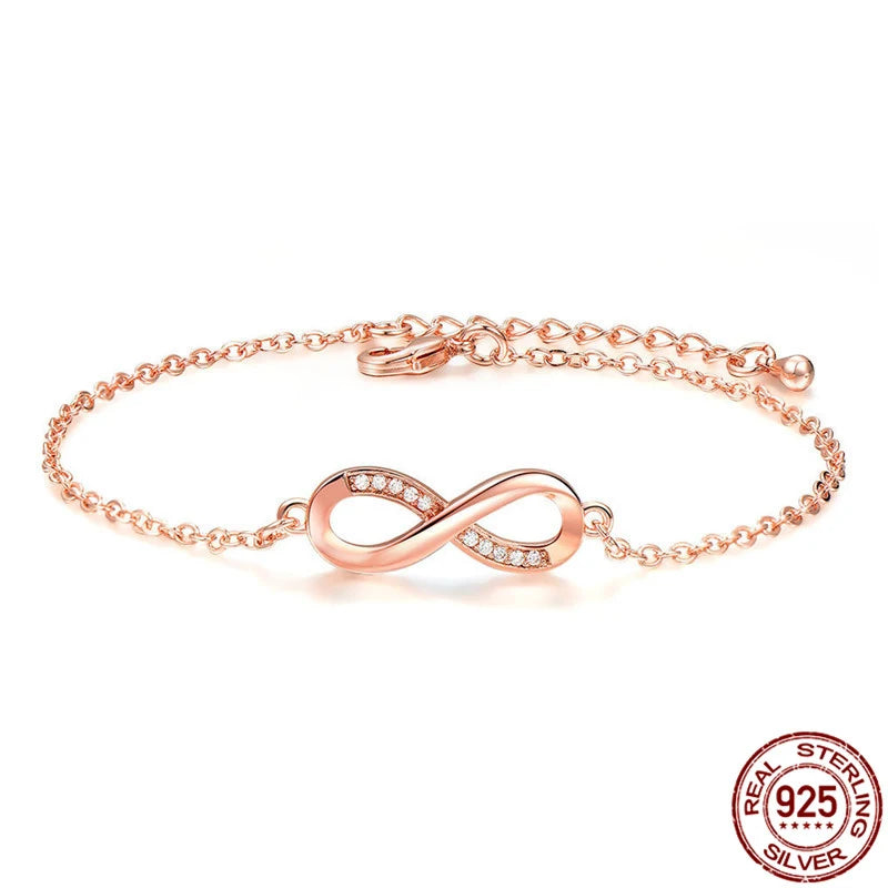 Elegant and stylish CZ crystal infinity bracelet, perfect for weddings and special occasions. Adjustable design fits all wrist sizes.