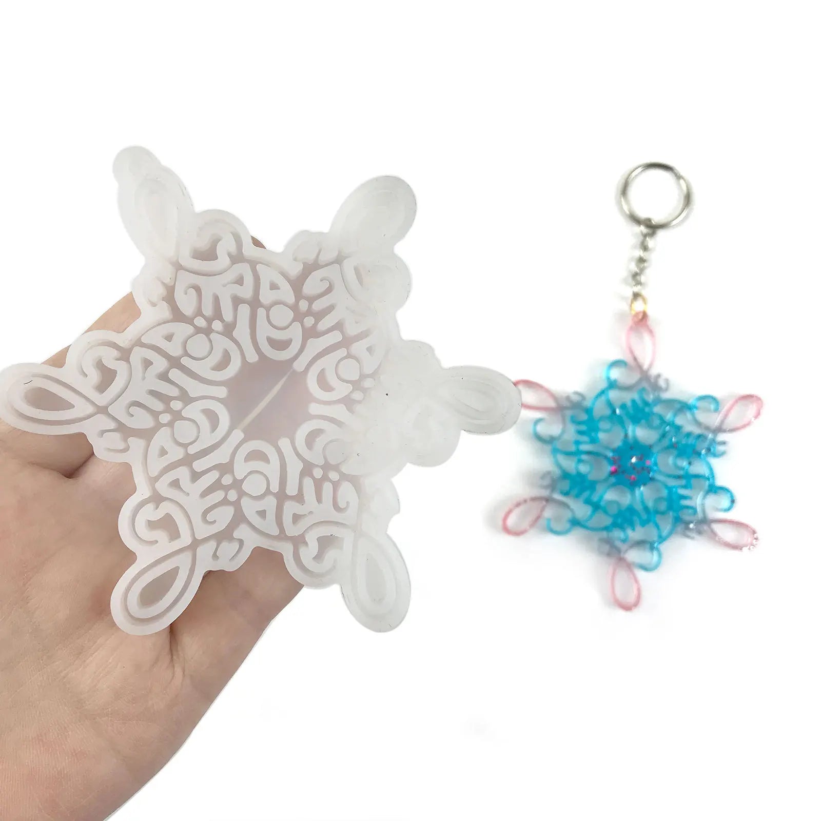 Create your own festive snowflake Christmas keychain or pendant with this silicone mold. Perfect for jewelry making and crafting supplies.