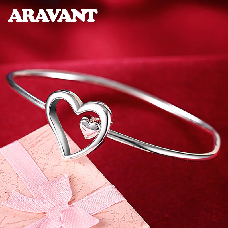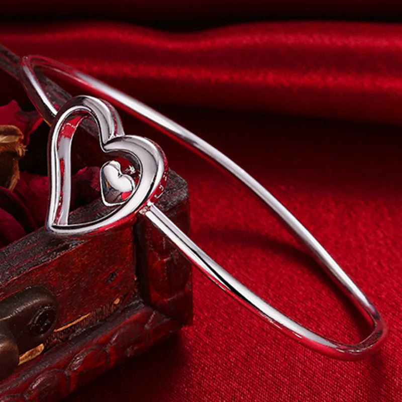 This beautiful Silver Charm Double Heart Bangle is made of authentic 925 silver. It is perfect for weddings or special occasions, adding elegance and charm to your ensemble.