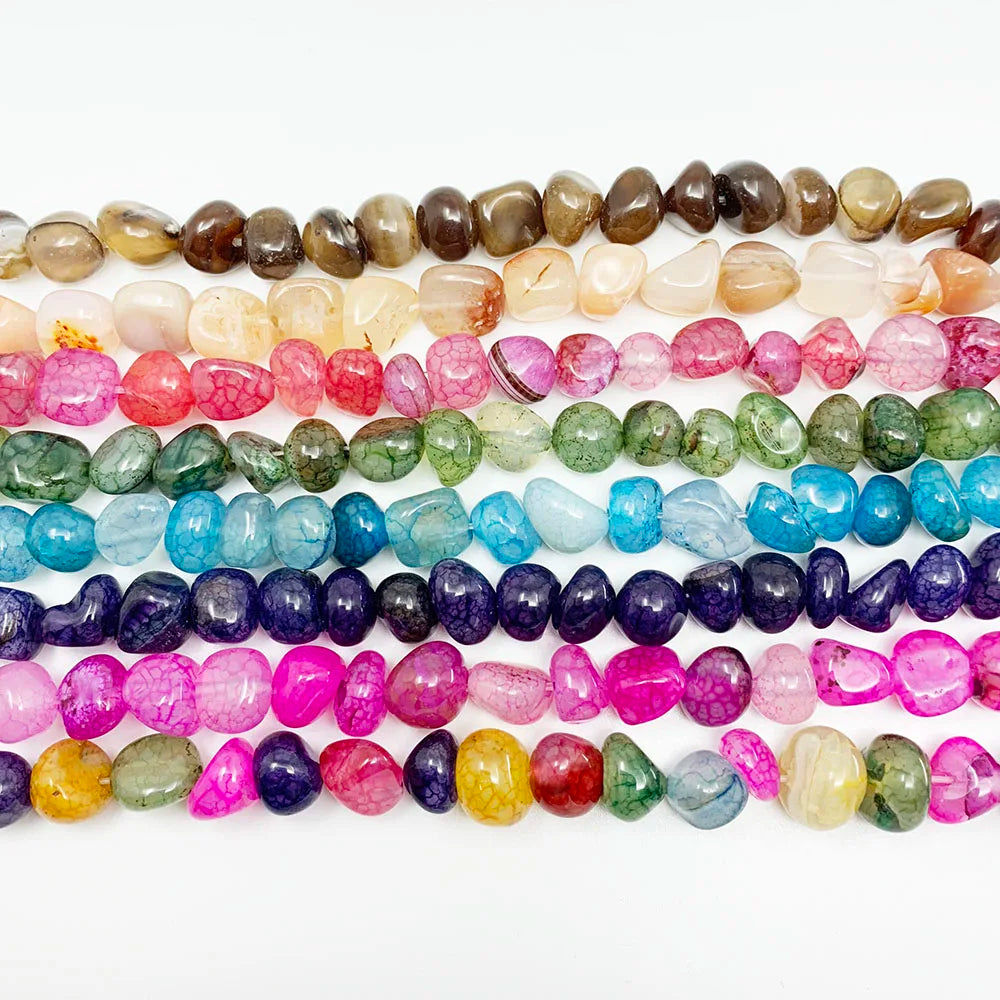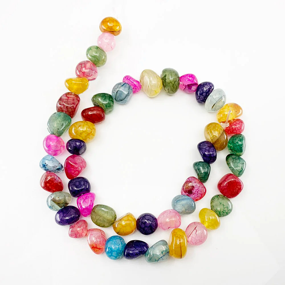 These natural stone dragon veins agates beads are perfect for DIY bracelets and jewelry making. Each bead is irregular in shape, giving your creations a unique look. Strand length is 15 inches.