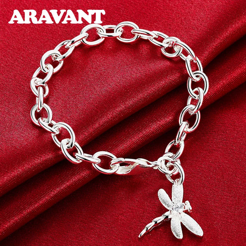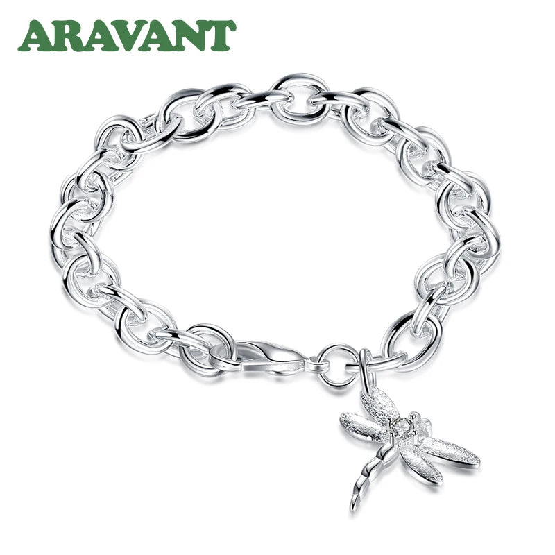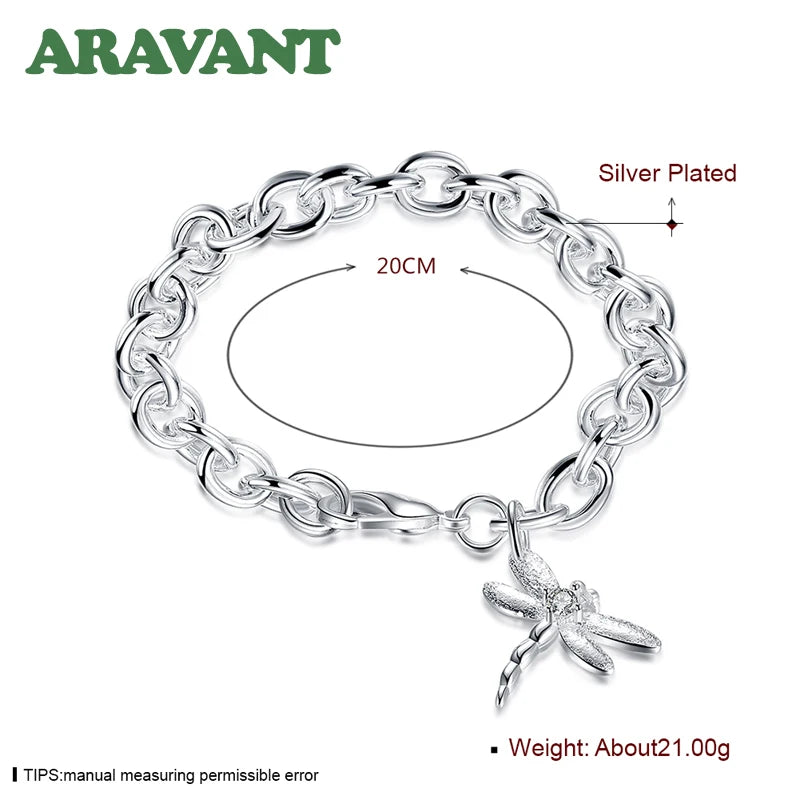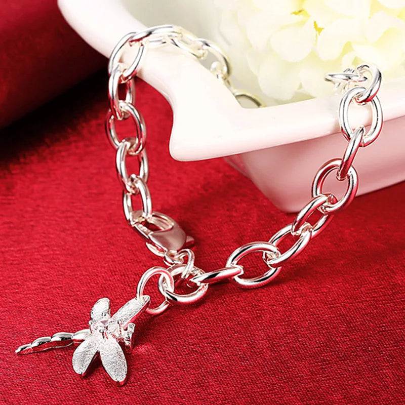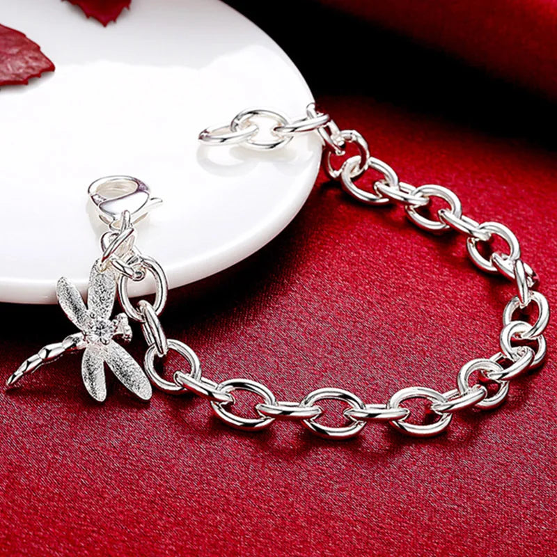 Dragonfly Charm Bracelet 925 Silver Women Wedding Jewelry