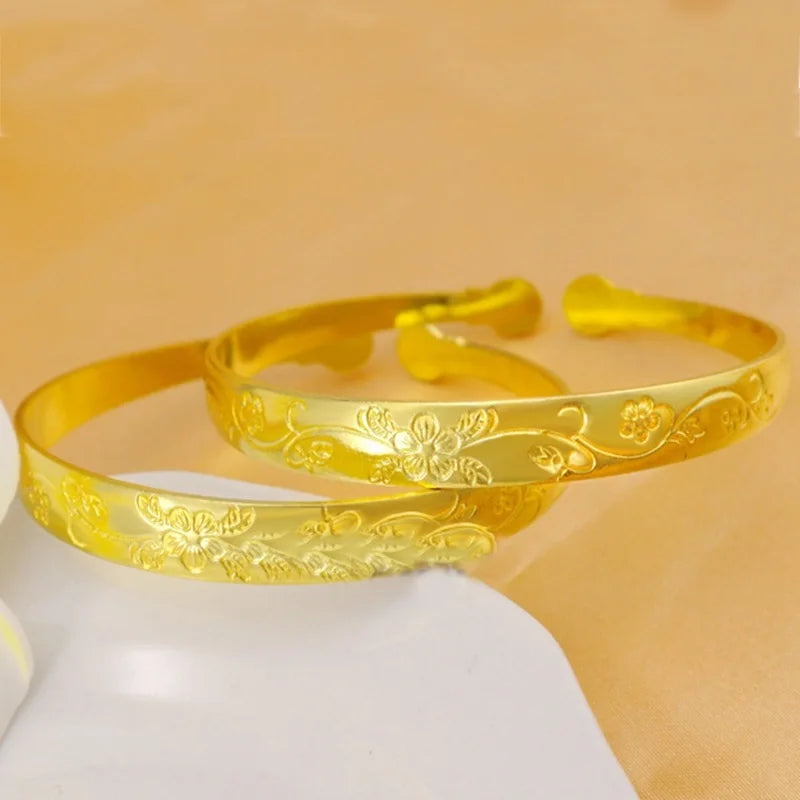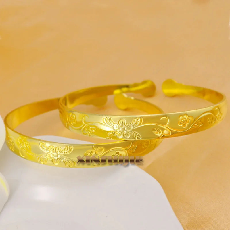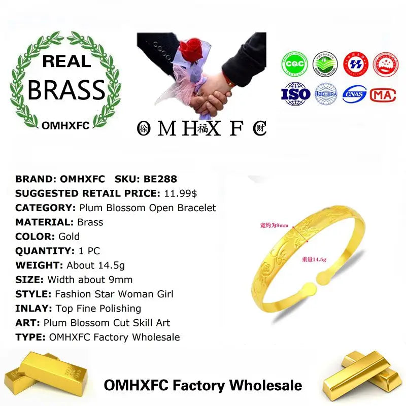 Add an elegant touch to any outfit with this beautiful European style Plum Blossom Flower Open Brass Bracelet. Perfect for parties, birthdays, weddings, or as a thoughtful gift.