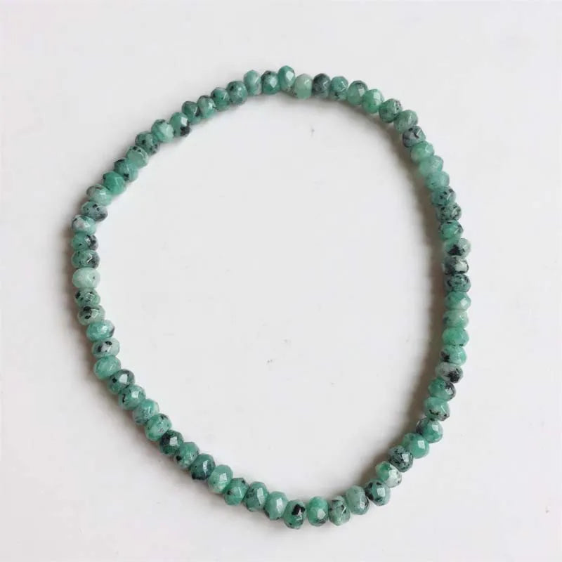 Add a touch of vintage charm with this stretchy bracelet featuring small faceted green emerald gemstone beads. Handcrafted with natural stone jade, perfect for women's jewelry collection.