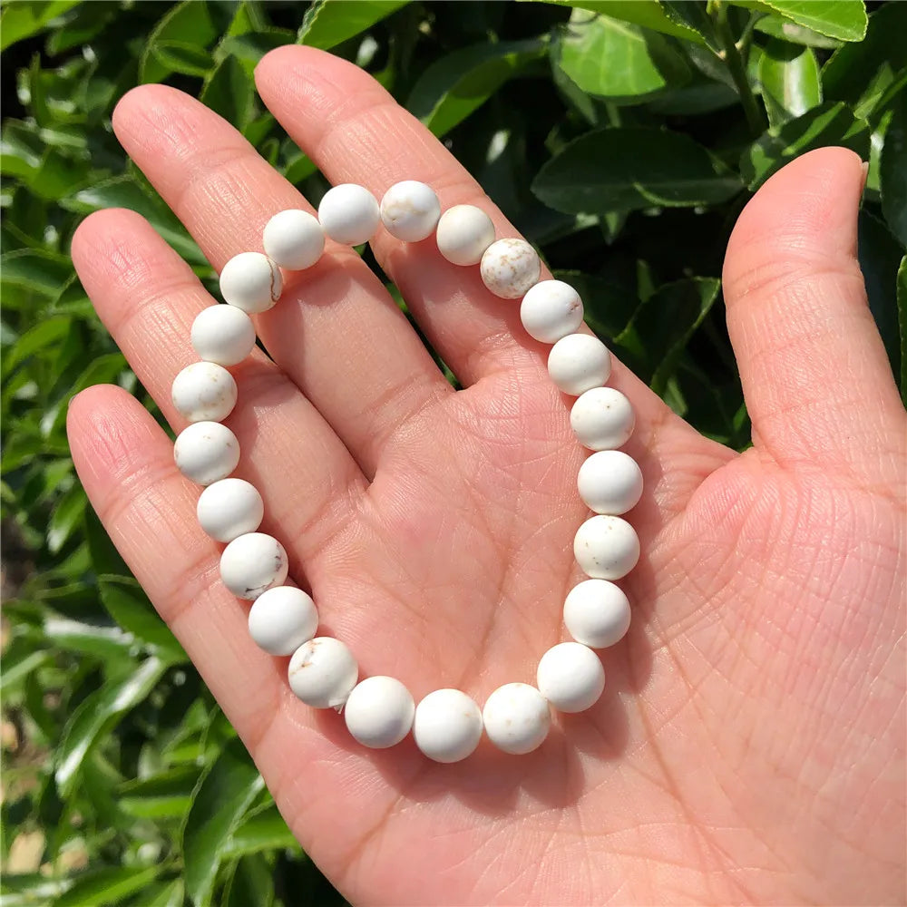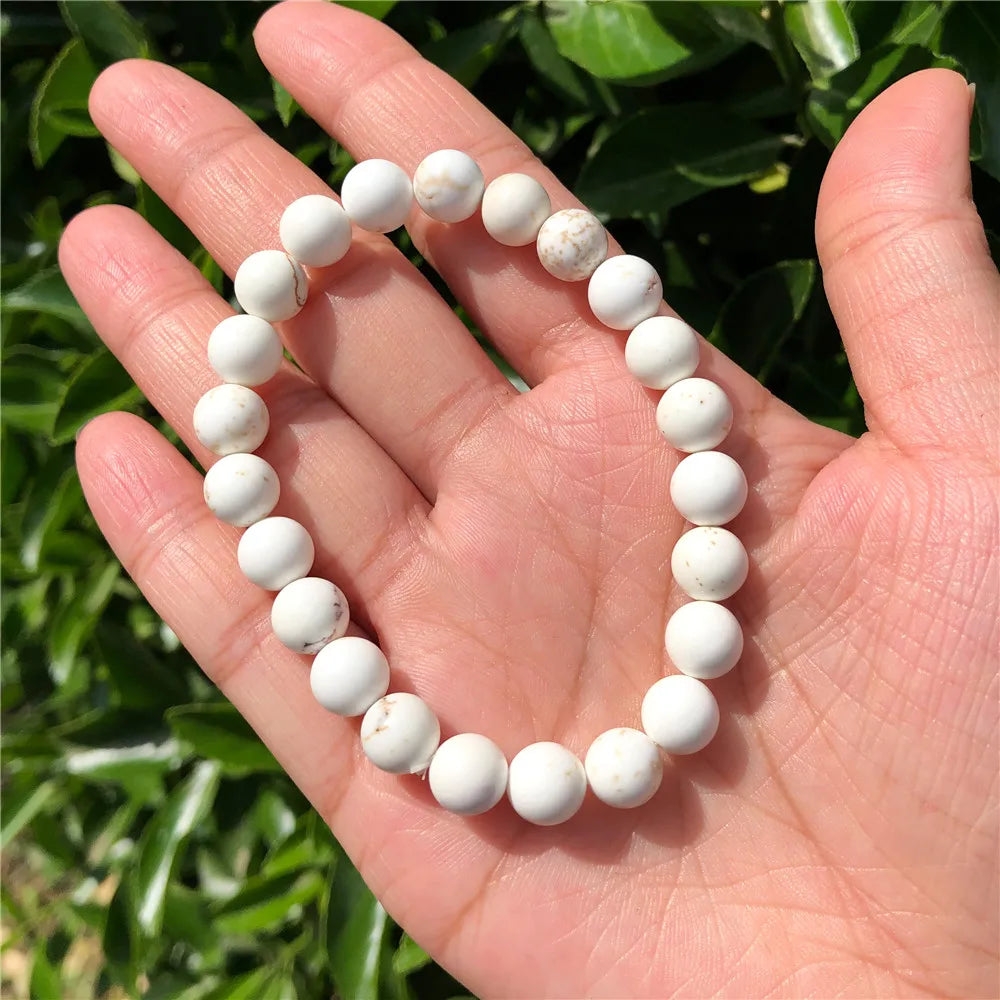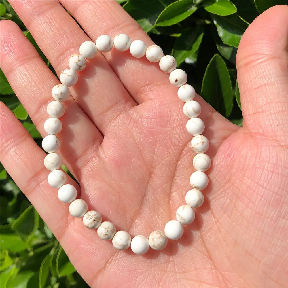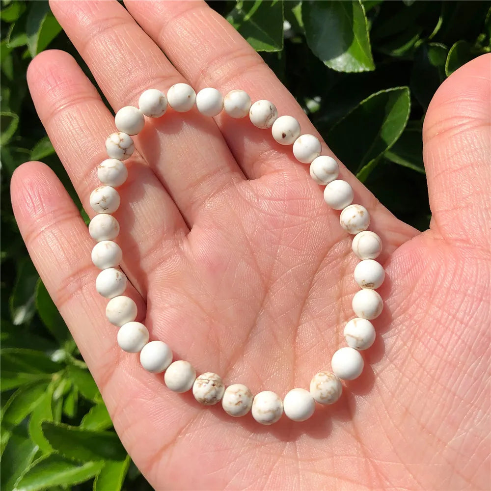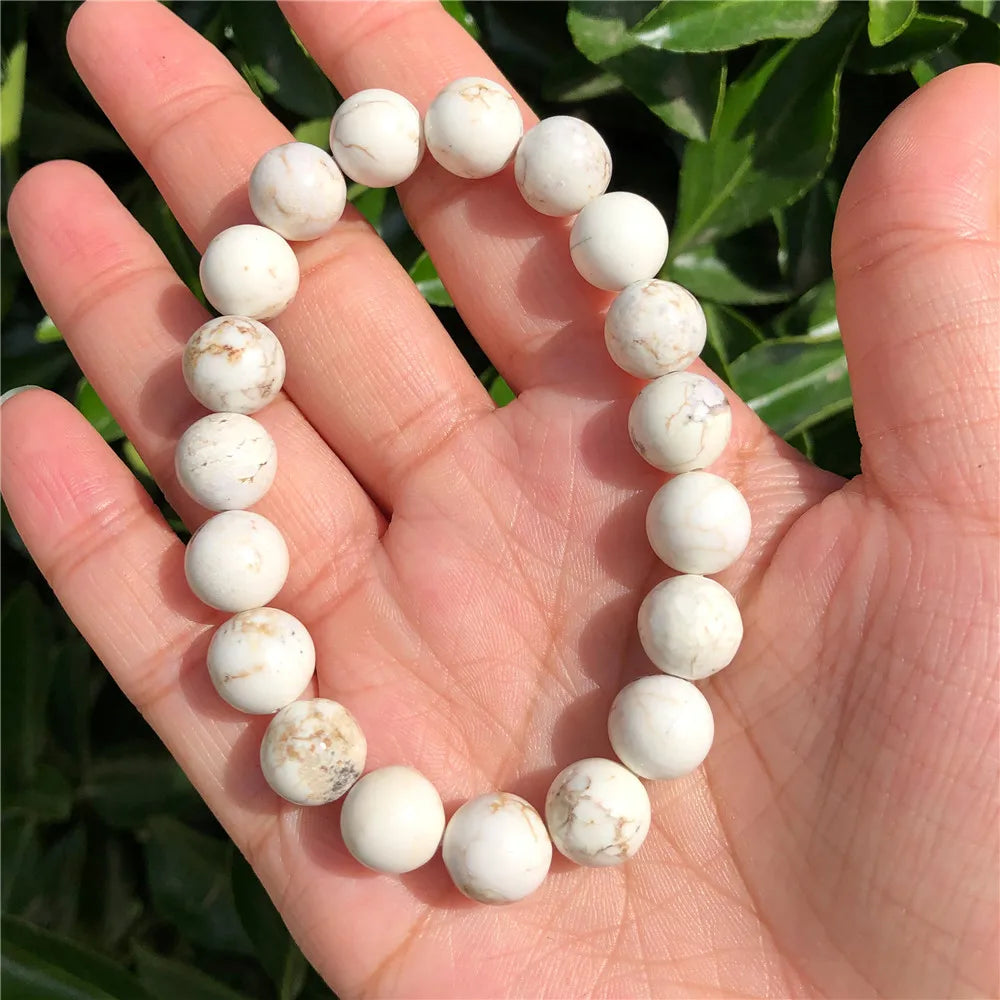This Fengbaowu bracelet features round beads made of Mongolia Howlite Magnesite crystal. It is a powerful Reiki healing stone jewelry piece that makes a thoughtful gift for any occasion.