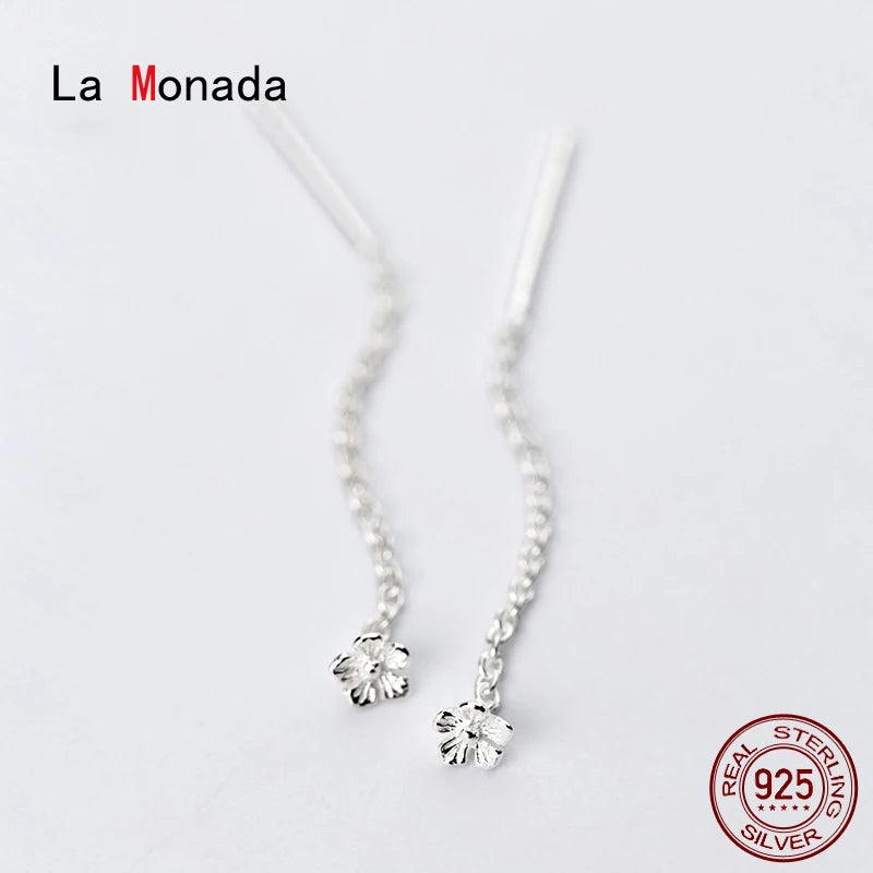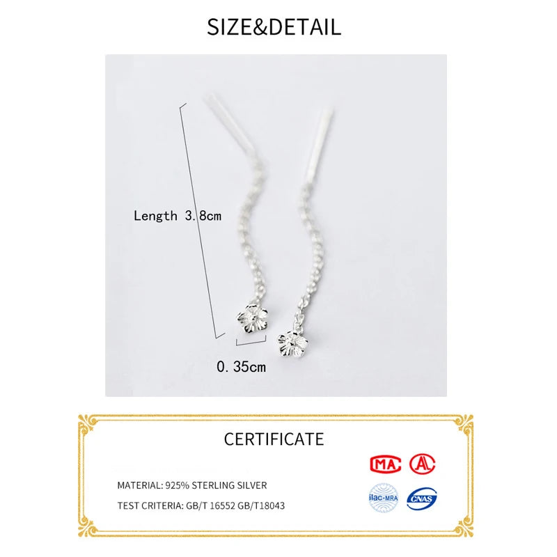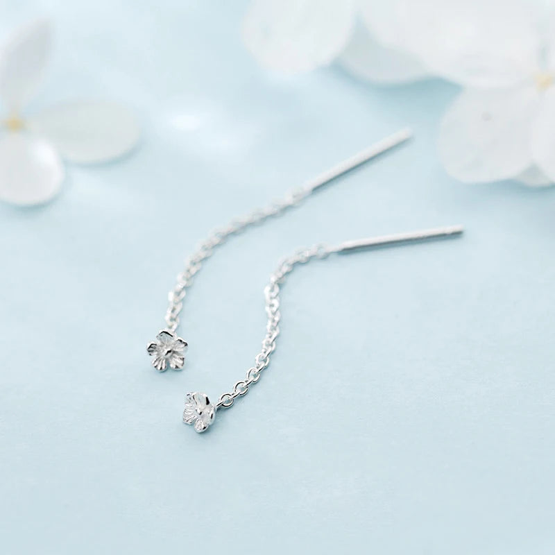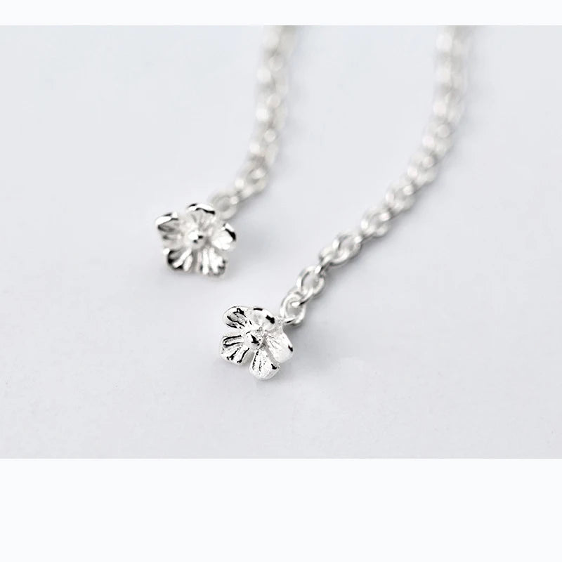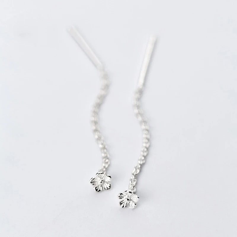 These elegant drop earrings feature a five petal flower design, crafted in 925 sterling silver. Perfect for adding a touch of sophistication to any outfit.