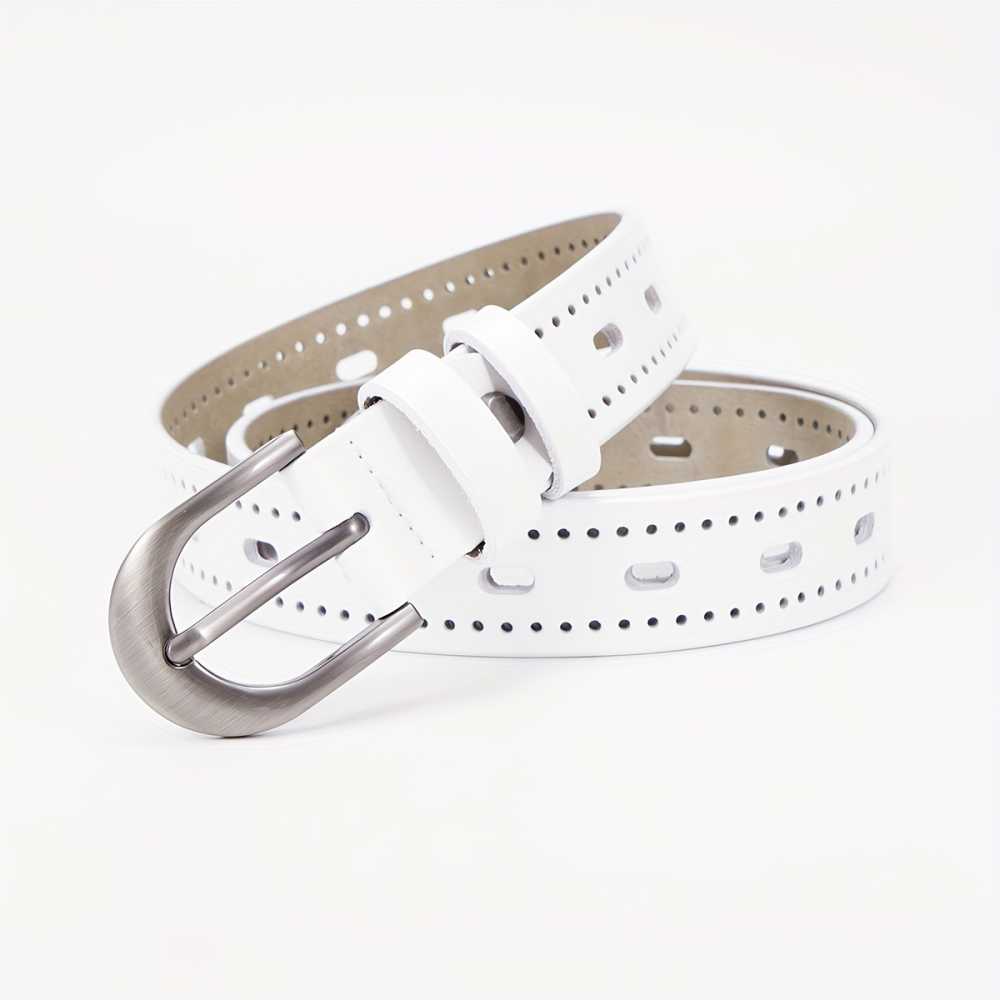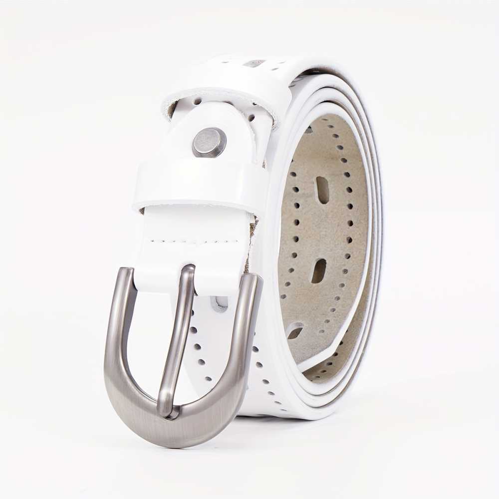 Elevate your style with our Genuine Leather Simple Belt, designed with a solid color and a chic hollow pattern. This versatile belt features an elegant oval pin buckle, making it the perfect accessory for jeans and pants. Crafted from high quality leather, it ensures comfort, while its timeless design complements any outfit. Perfect for everyday wear or special occasions, this belt adds a touch of sophistication to your look. Its adjustable fit ensures it’s both practical and stylish, making it suitable for various body types. Whether you're dressing up for a night out or keeping it casual, this belt is a must have addition to your wardrobe that seamlessly blends function and fashion.