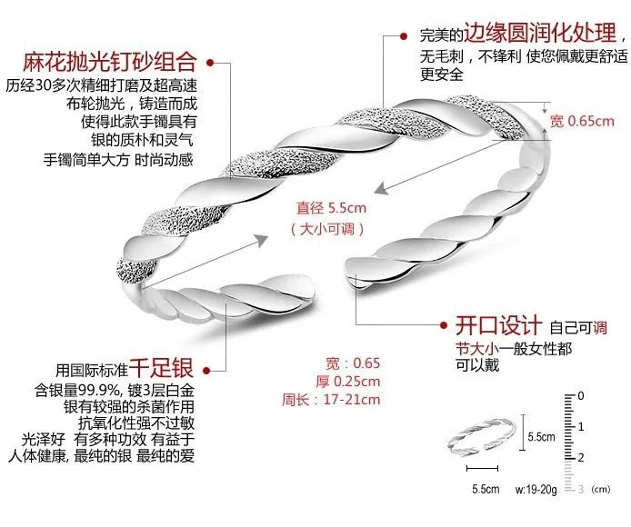 Elegant and stylish geometric love intertwine bangles made of fine 999 sterling silver. Adjustable to fit any wrist size. Perfect for kpop star style!