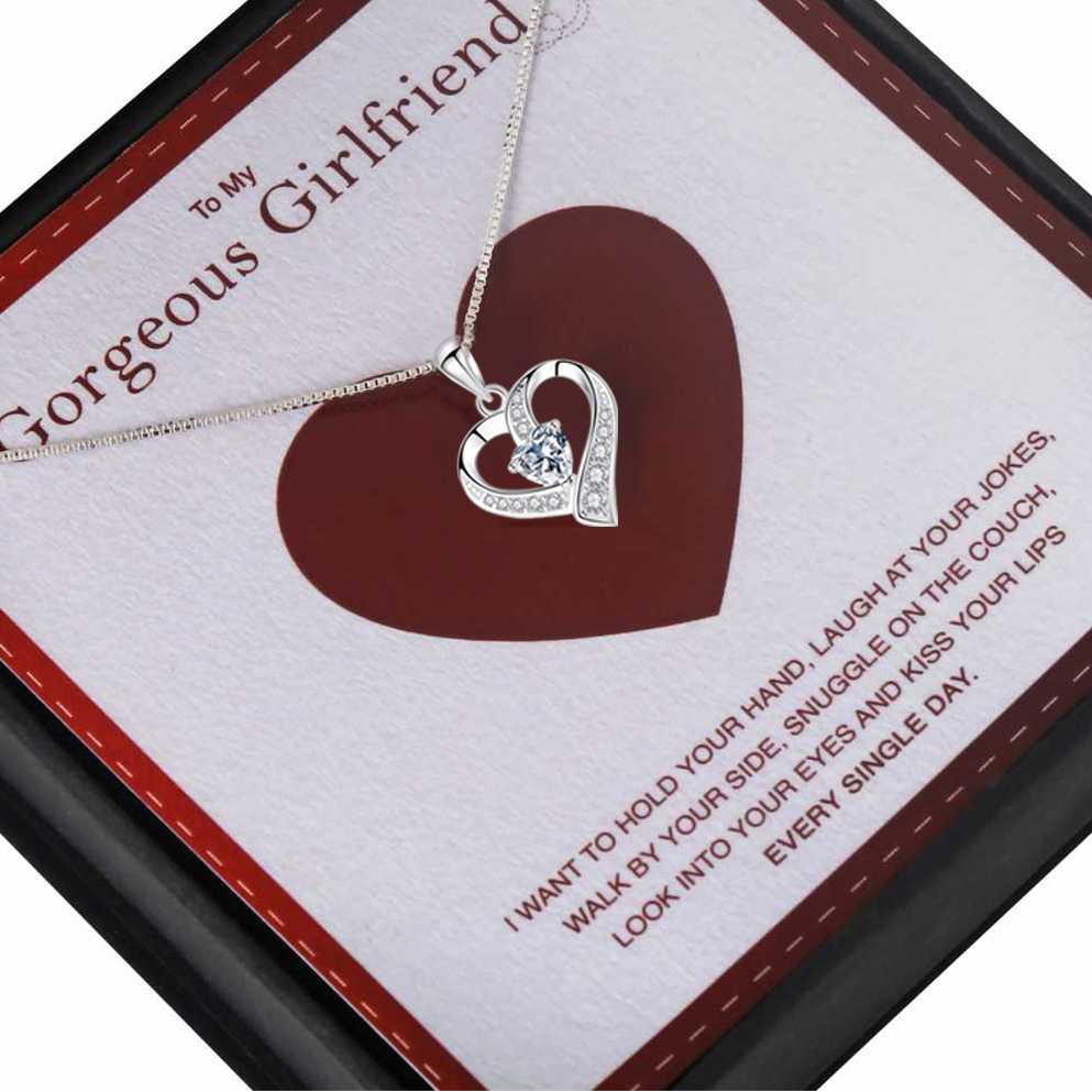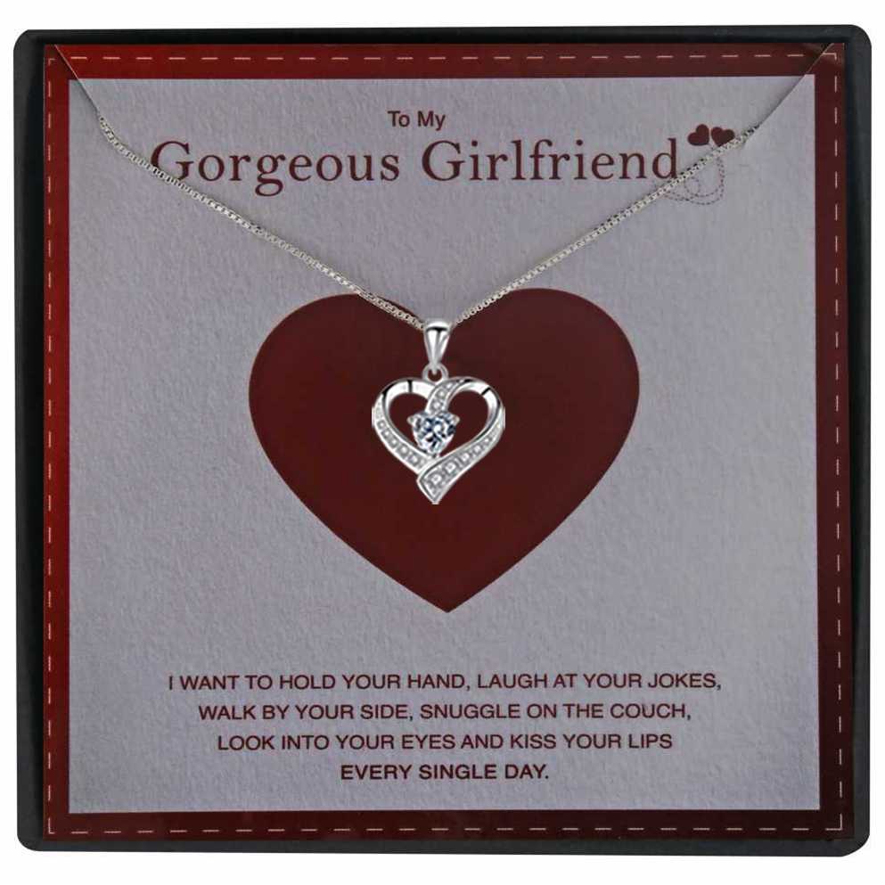- Product Particulars: This pendant necklace is made of high quality material plated with silver and studded with cubic zirconia stones. It comes with beautiful To My Gorgeous Girlfriend message card.