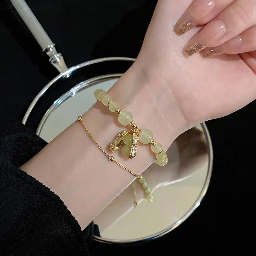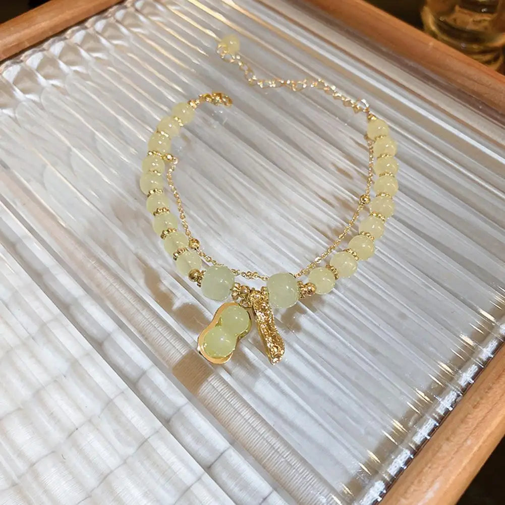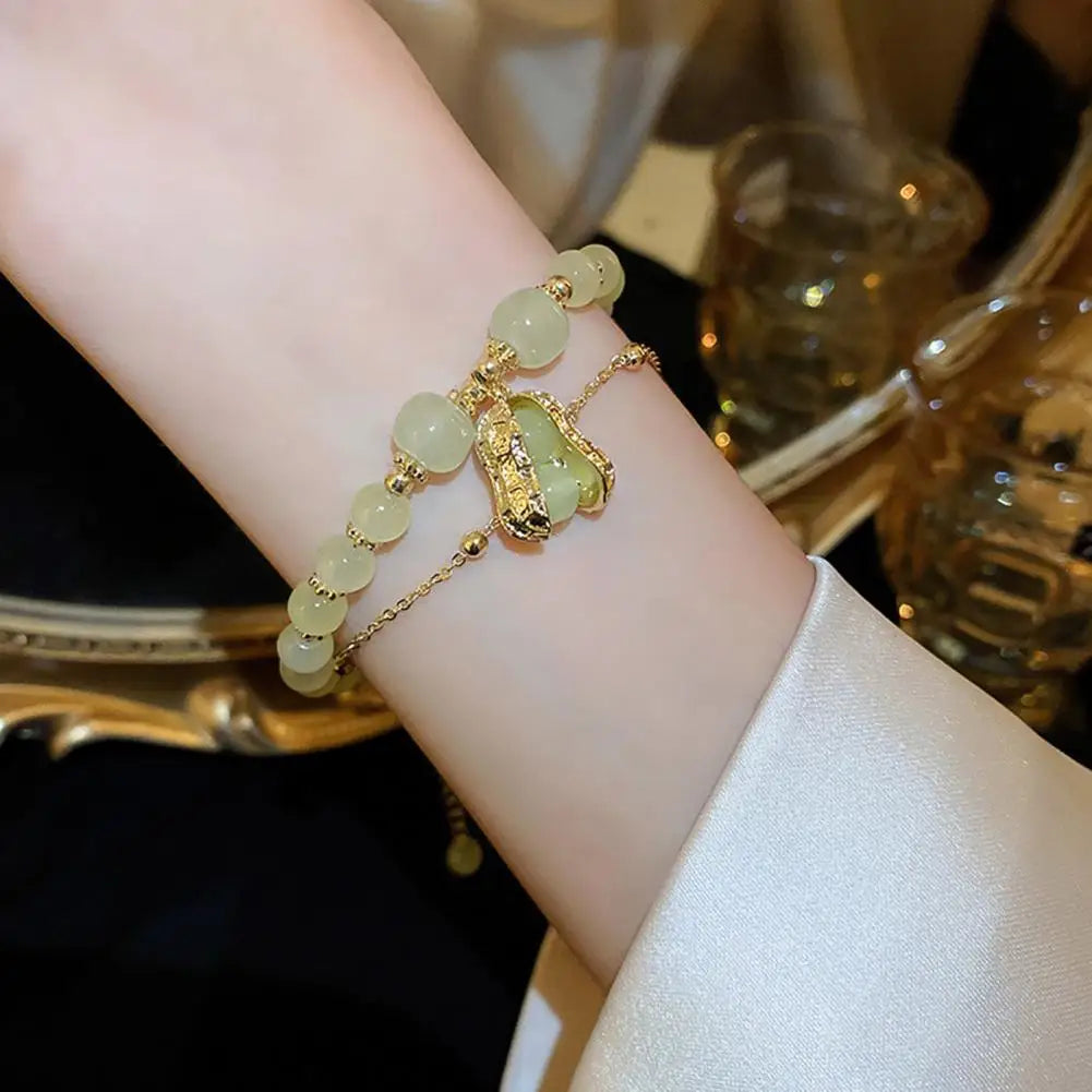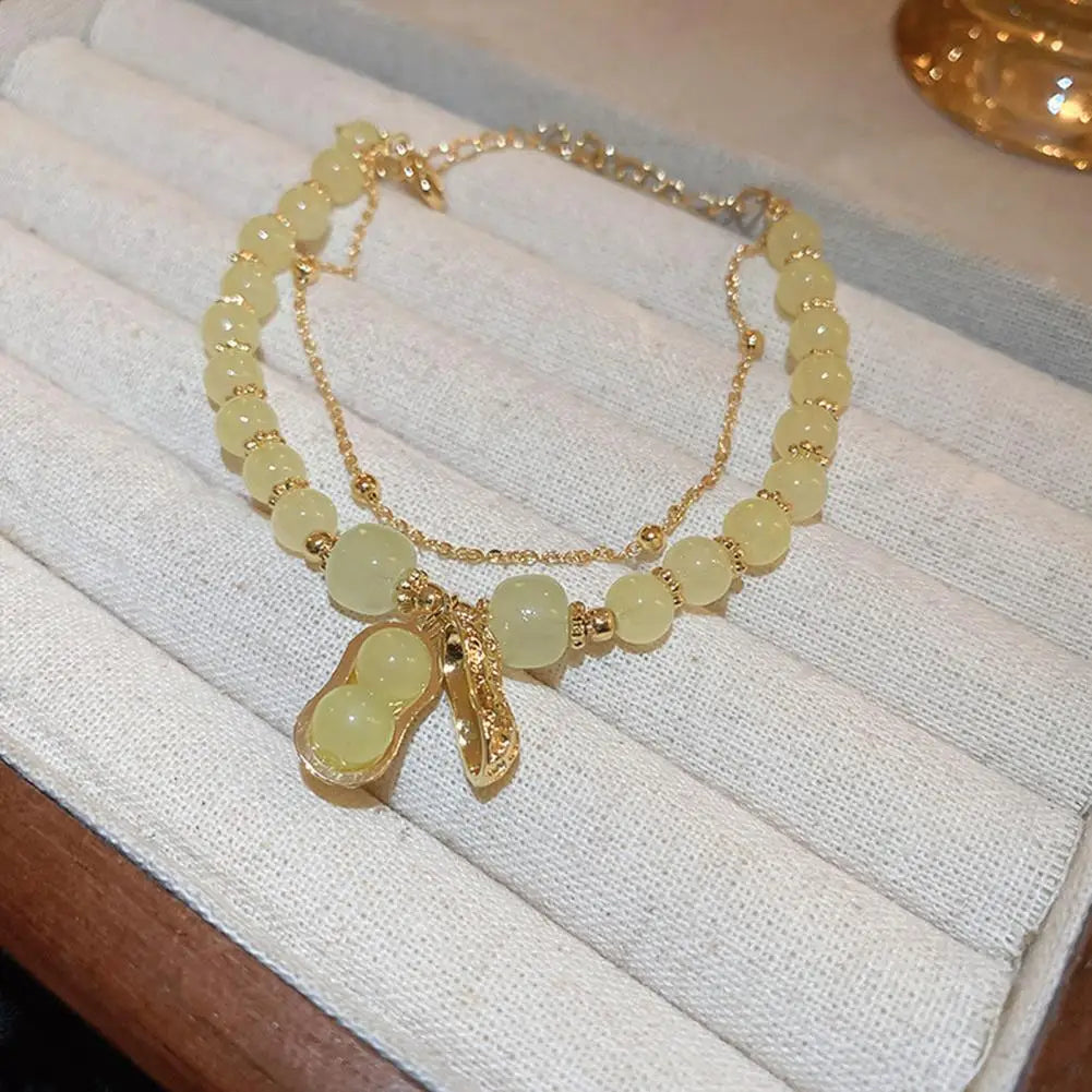 This stylish bracelet features a double-layer design with a smooth peanut pendant, perfect for adding a touch of elegance to your outfit. A great accessory for dates and special occasions.