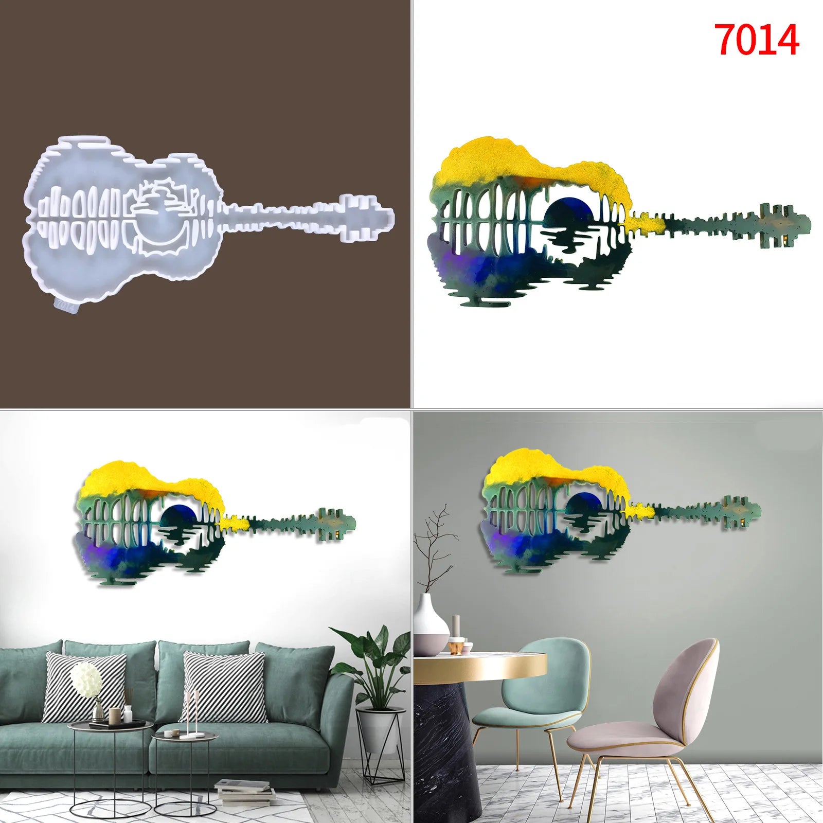 Create stunning guitar-themed home decor or jewelry with this versatile silicone mold. Perfect for making mirror resin guitar pendants and wall hangings.