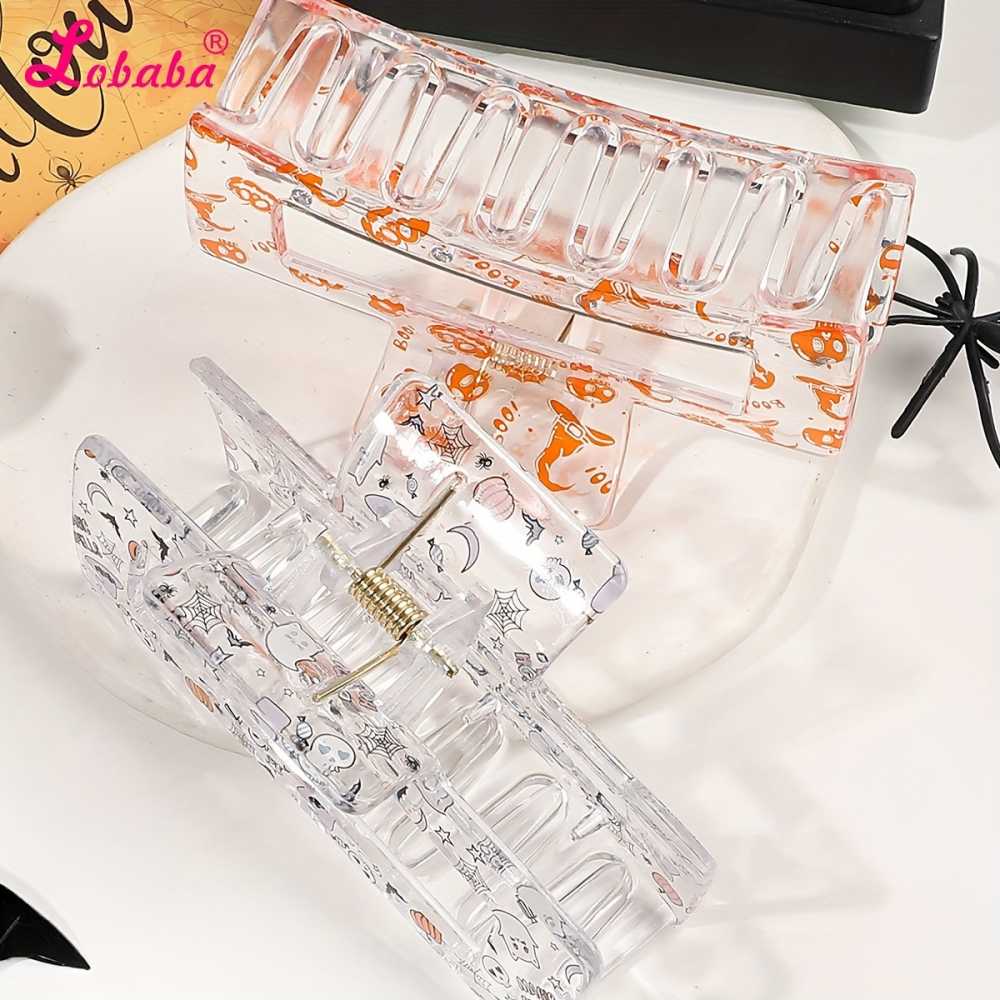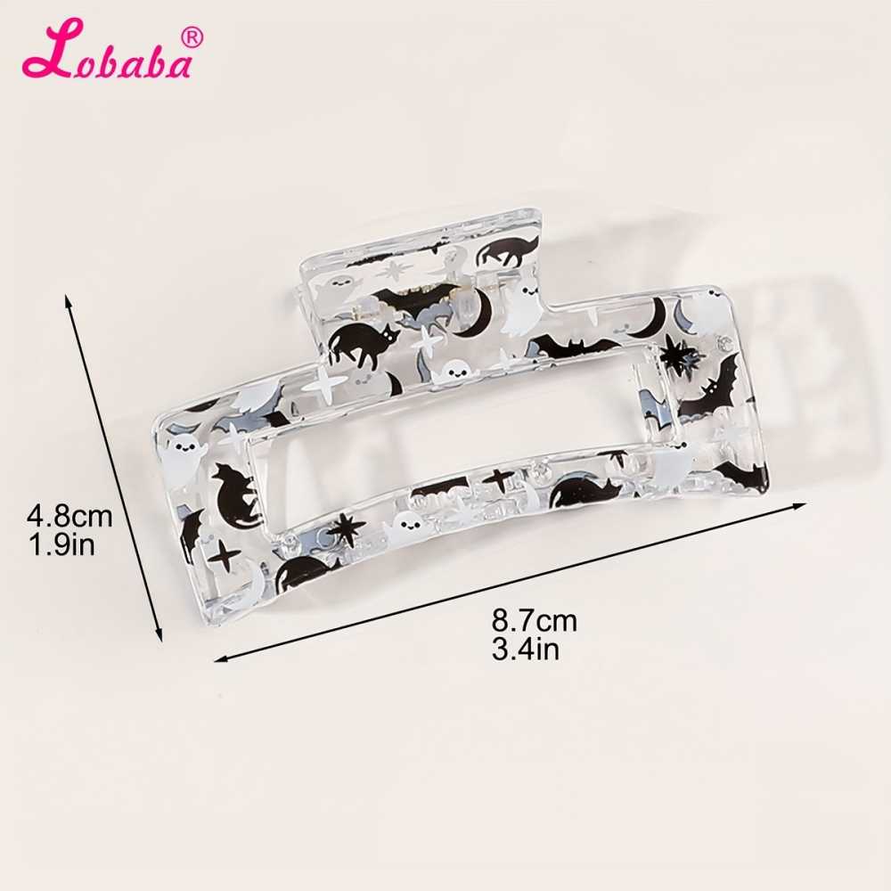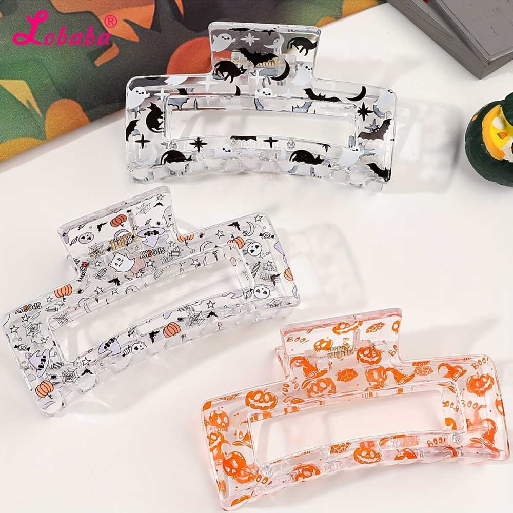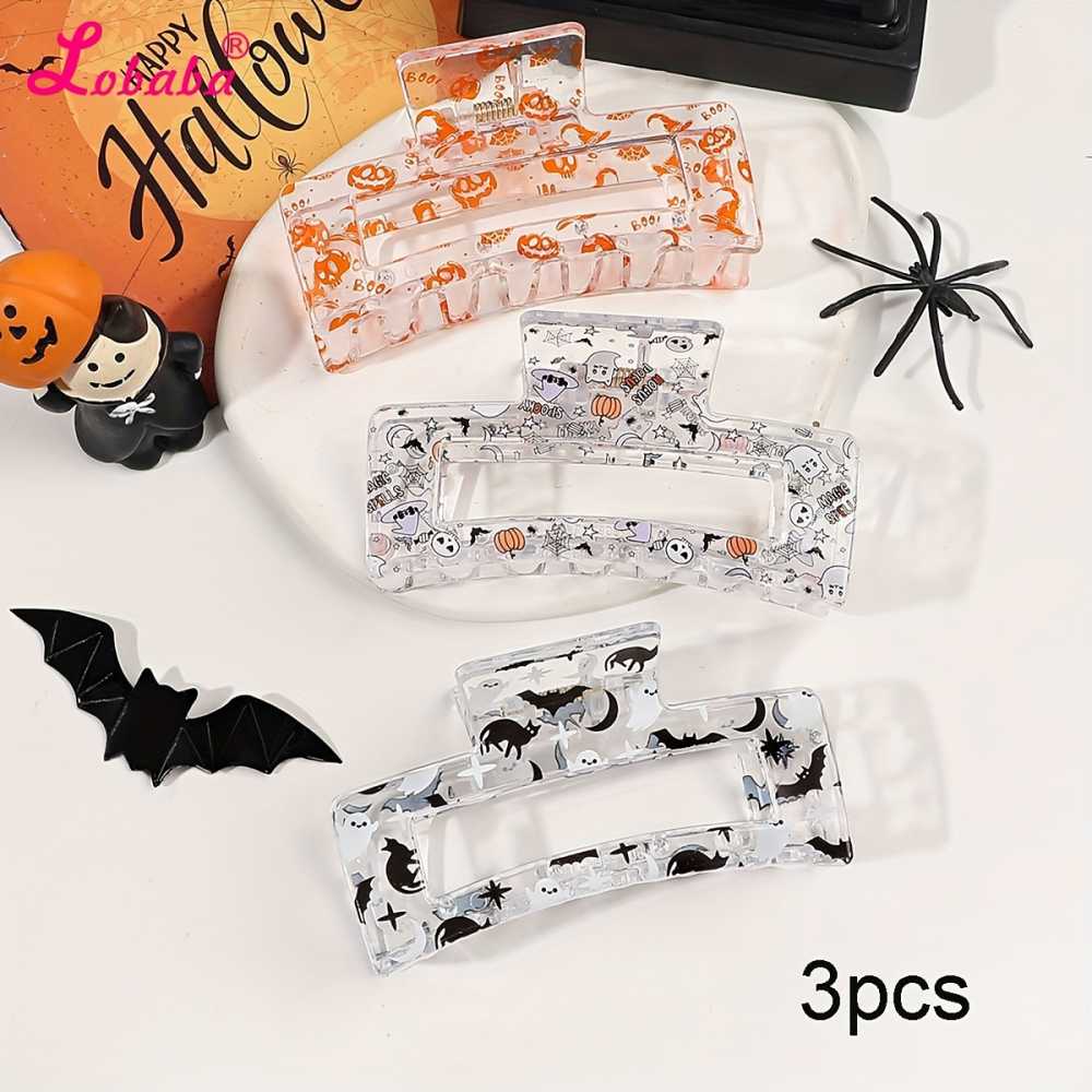 Halloween Hair Claw Set of 3 Large Rectangular Clips with Skull Prints