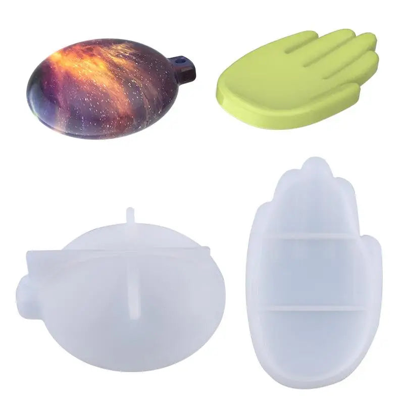 Create stunning resin crafts with this DIY hand storage tray pendant mold. Perfect for making decorative jewelry pieces with dried flowers. Mold is made of high-quality silicone for easy use and lasting durability.