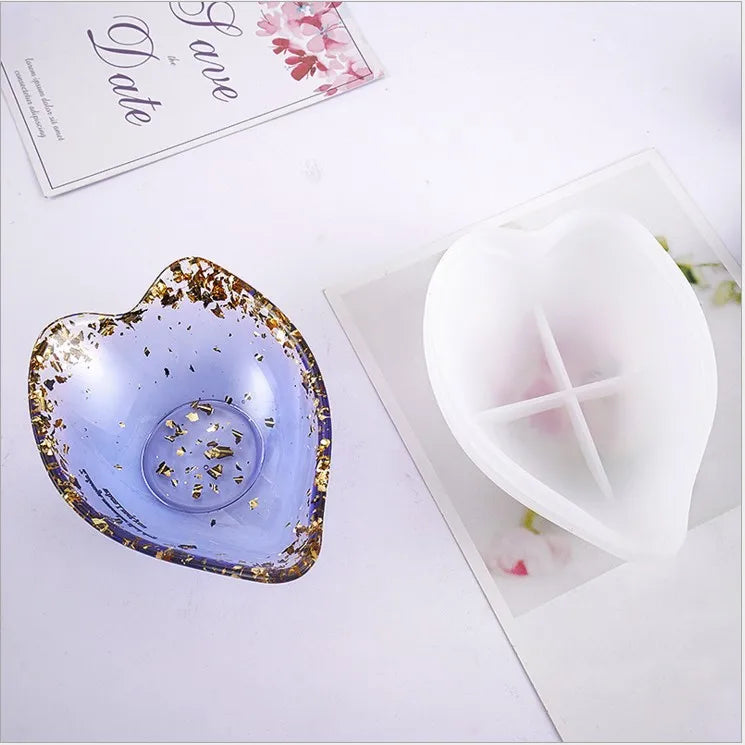 Create beautiful resin crafts with this transparent silicone mould that features heart-shaped leaf dish design. Ideal for making decorative items or jewelry using dried flowers.