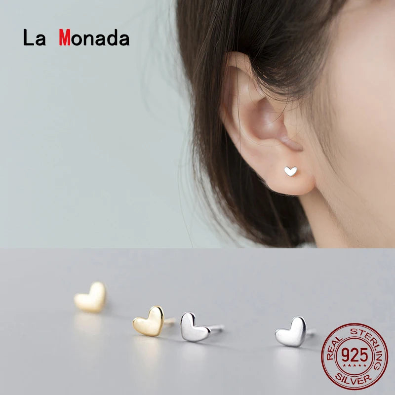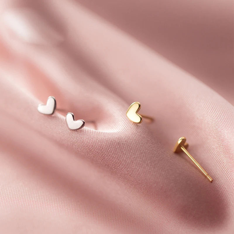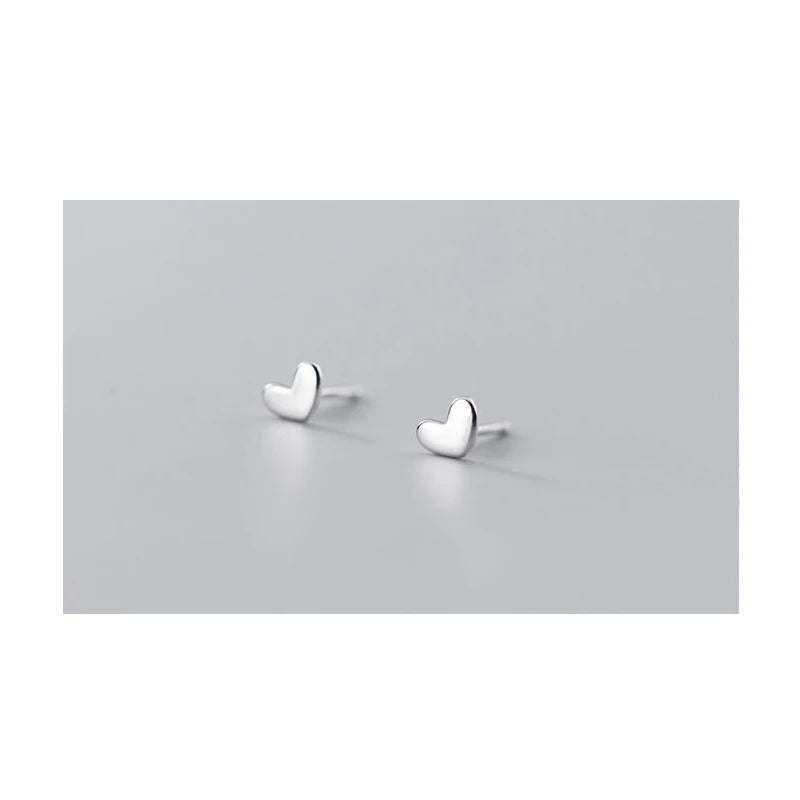 Heart Stud Earrings 925 Sterling Silver Minimalist Women's Jewelry