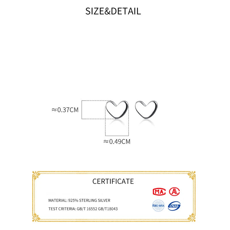 Heart Stud Earrings 925 Sterling Silver Minimalist Women&