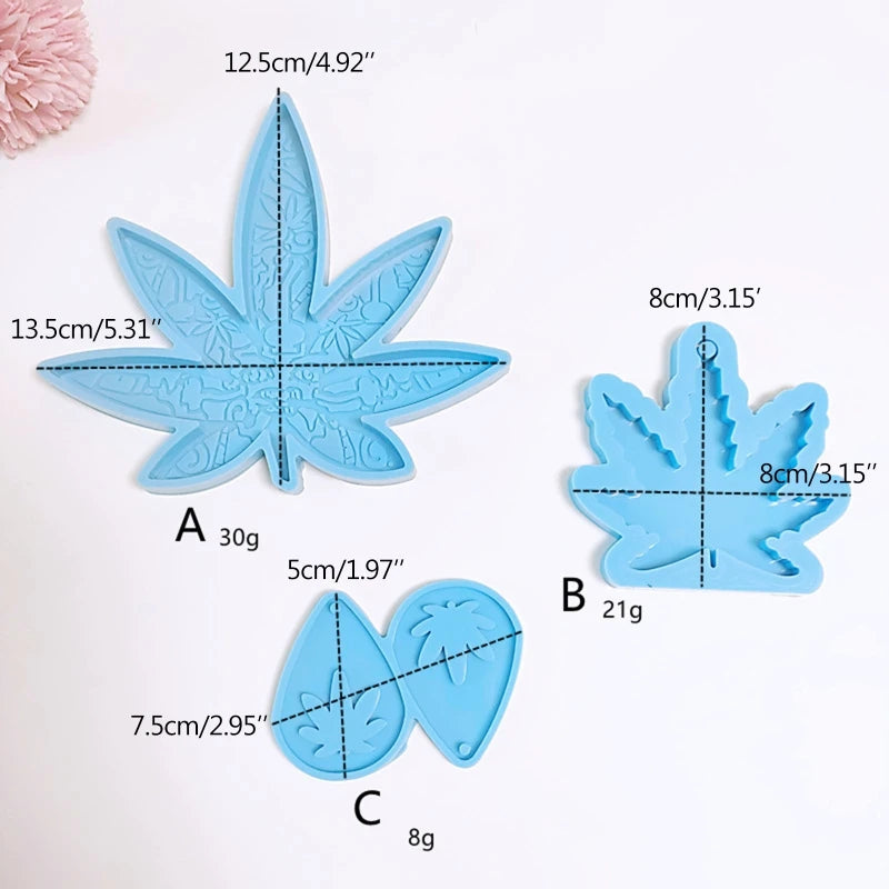 Create unique and stylish items with these silicone molds that feature hemp leaf designs. Perfect for making keychains, pendants, earrings, or backpack decorations.