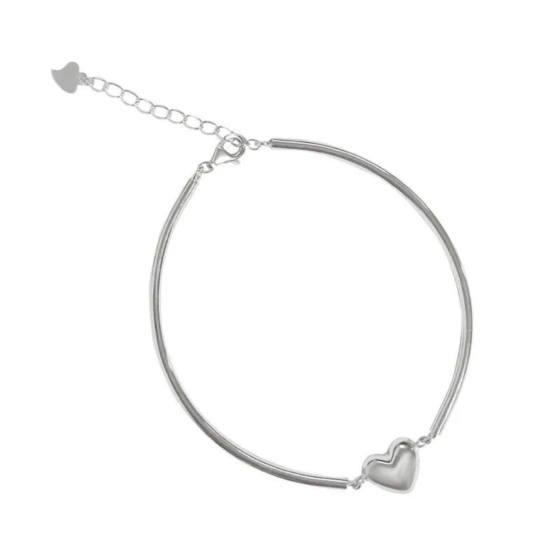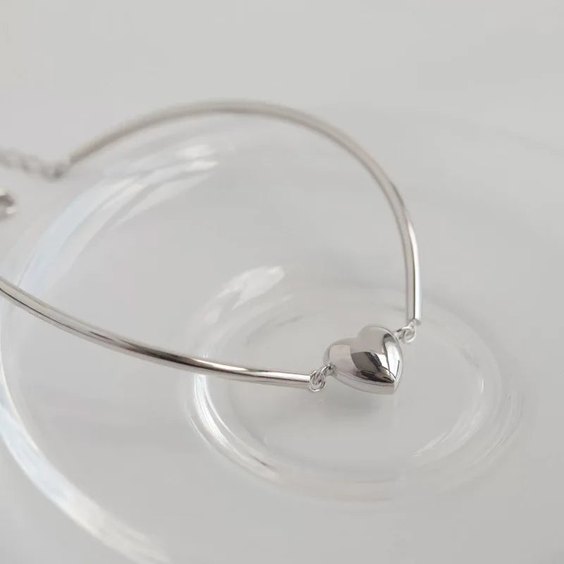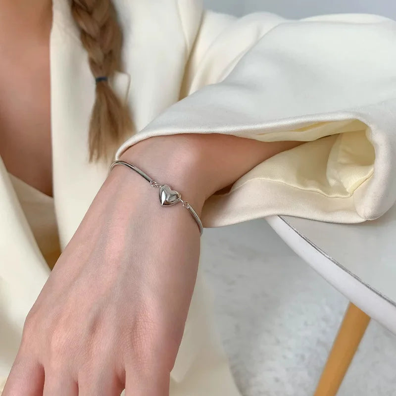 Hip Hop Heart Bracelet for Women 925 Sterling Silver Sweet Girl Bangle Jewelry