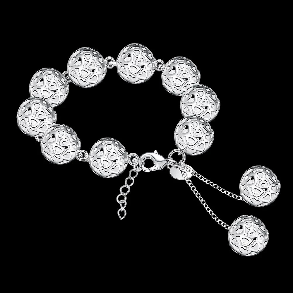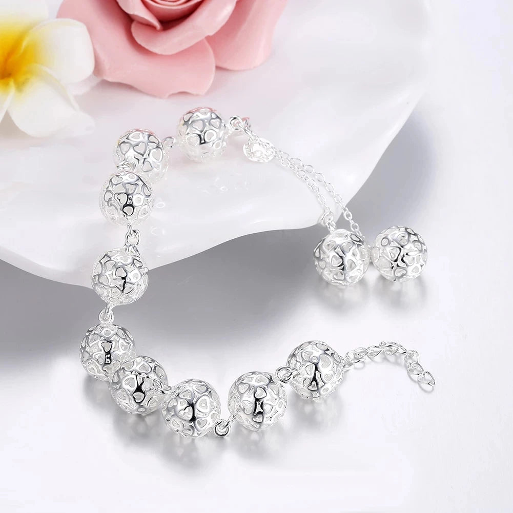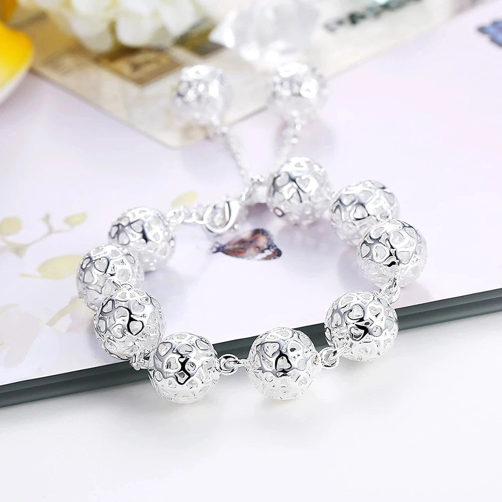 This stunning bracelet is crafted from 925 sterling silver, featuring a beautiful hollow heart ball design. Perfect for weddings, parties, or Christmas celebrations.